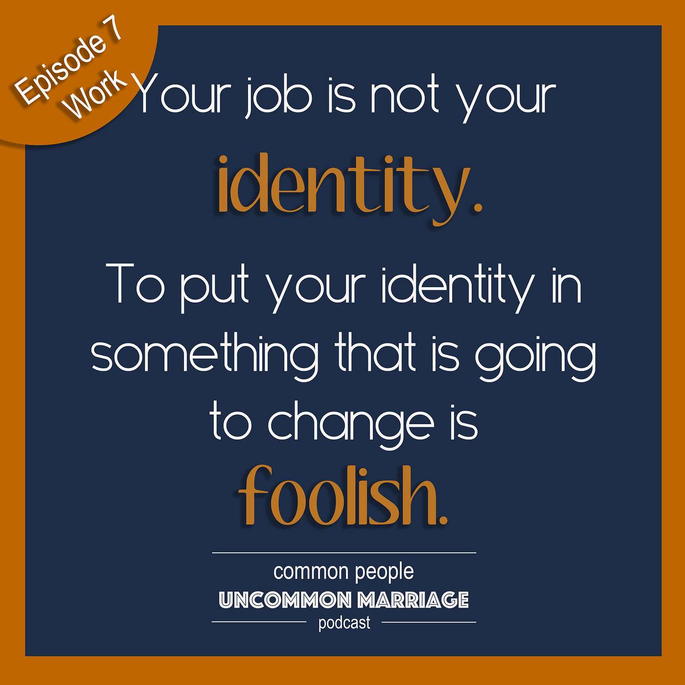 It’s dangerous to attach your identity to your job. Everything is a season. No job will last forever. My joy and my peace don’t come from my job either.