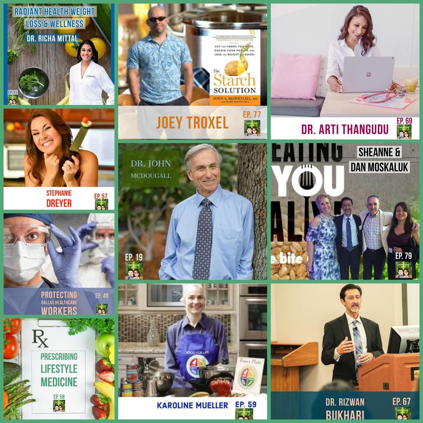 In this episode, we visit highlights of the top 10 Plant Based DFW episodes of 2020. Check out the video on bit.ly/plantbaseddfwThis is our podcast website: plantbaseddfwpodcast.com10. Joey Troxel of Plant Based Dads: Time Stamp 7:30*Started his YouTube channel to hold himself accountable*Started his FB support group to offer support after he has a minor setback *His kitchen renovation video helped him channel become monetized9. Karoline Mueller, Food for Life InstructorTime Stamp 23:14*Struggled with weight and stay between 200 -240 pounds for many years*Was getting on the right track when she lost her mother *Despite finding permaculture and veganism and feeling good this way, she would return to her old ways, many of us can identify with this.*Plant Pure Pod leader8. Stephanie Dreyer of Batch Cooking ClubTime Stamp 34:41*The Kind Diet by Alicia Silverspoon caused her to go vegan overnight*Creator of the Batch cooking club7. Lifestyle Medicine Physicians in TexasTime Stamp 43:55*Drs. Munish and Bandana Chawla (owners of a LM practice)*Dr. Riz explains his work, the difference between a vascular surgeon and cardiologist *Dr. Nancy Eriksen is an OBGYN and specializes in high risk pregnancies, 6. Dr. Rizwan BukhariTime Stamp 1:08:05 *Dr. Riz’s lectureon cardiovascular disease5. Dr. Richa MittalTime Stamp 1:20:43*Obesity Medicine, lifestyle medicine4. Sheanne & Dan MoskalukTime Stamp 1:33:11*Featured in Eating You Alive*Sheanne weight loss*Dan stage 4 kidney cancer3. DFW CareTime Stamp 1:56:56*Keren Wang*Local Chinese American group that organized in 24 hours to provide PPE’s for Dallas healthcare workers and people on the frontline 2. Dr. Arti Thangudu Time Stamp 2:08:55*Plant Based Endocrinologist, specializes in hormones. *Treats diabetes, thyroid issues, PCOS, etc. 1. Dr. John McDougallTime Stamp 2:34:00*Speaks about the research he was doing early in his career and how he discovered the power of plant based foods*We talk about his live-in program*Lifetime Achievement Award*Passionate about the environment___________________________________________________________Visit Our Podcast Website: www.plantbaseddfwpodcast.com/About Plant-Based DFW Podcast:Our podcast is recorded in Dallas, Texas and features guests from all over the world. We focus on the main topic of LIFESTYLE MEDICINE. Our goal is to provide resources to help you take control of your health.#drrizwanbukhari #plantbaseddfwpodcast #mayaacosta______________________________________More about us:➤ Visit our website: https://plantbaseddfw.com/➤ Dr. Riz on Instagram : www.instagram.com/dr_riz_bukhari/➤ Dr. Riz on Facebook : www.facebook.com/DrRizBukhari/➤ Subscribe on YouTube : bit.ly/plantbaseddfw➤ Subscribe to our Newsletter : bit.ly/drrizguide➤ Join our private Facebook Group: bit.ly/FBplantbaseddfw
