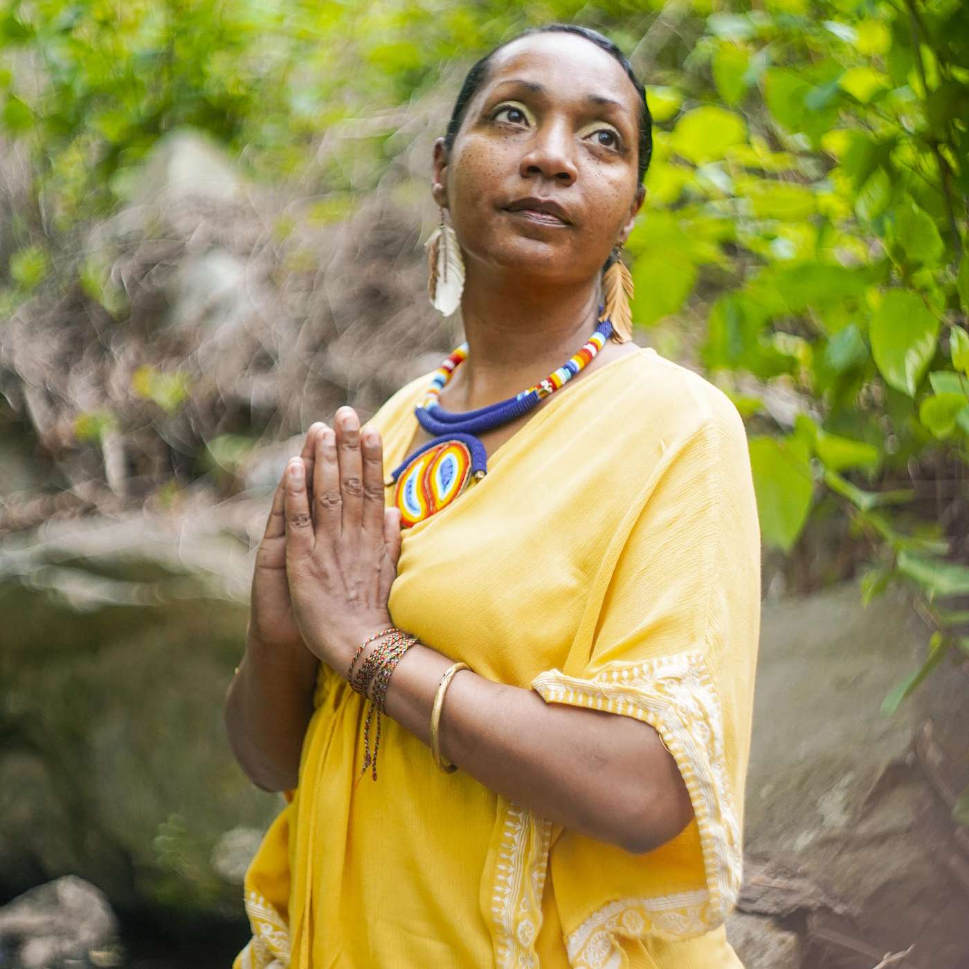 Omi is trauma-focused counselor, kids yoga teacher, diversity facilitator, a mom, an artist and an author. She is a total water fanatic and for the last 15 years has traveled to many sacred waterways across the world. And she's been researching the iconography and connecting stories of African and Asian Water Mother Goddesses and how they connect us to each other, and a world of peace.