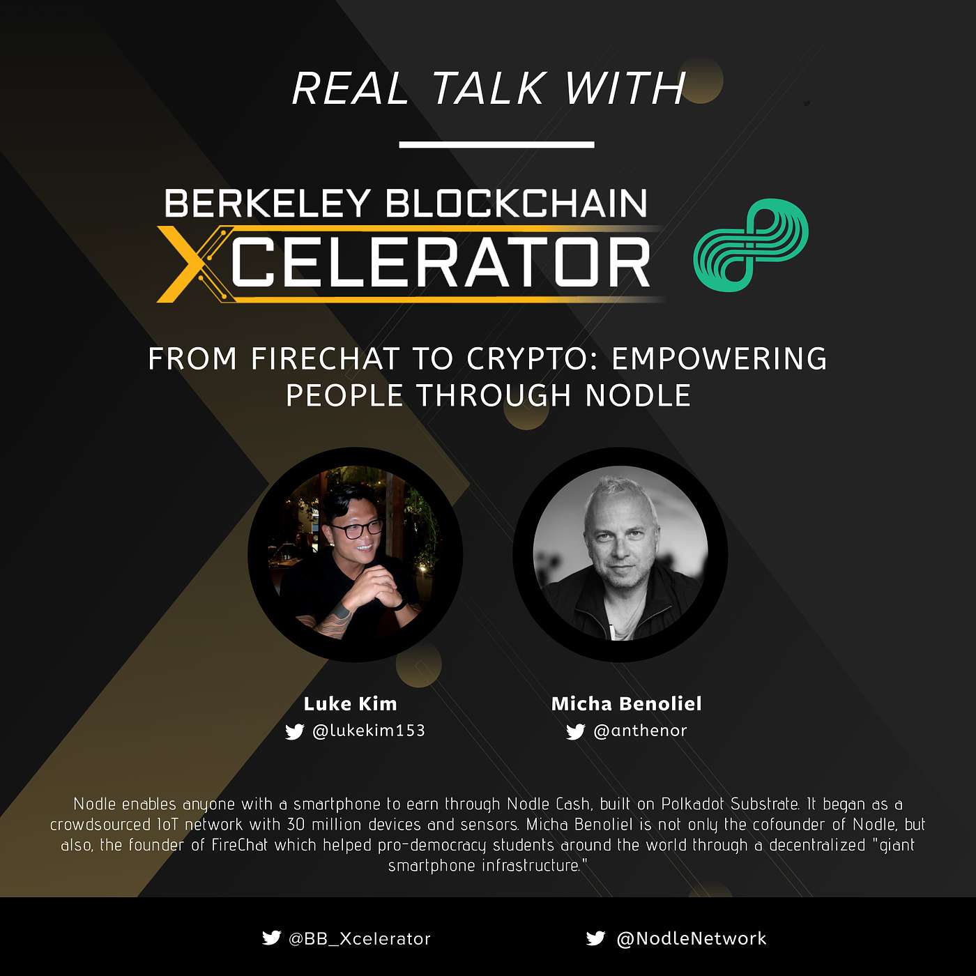 Nodle enables anyone with a smartphone to earn through Nodle Cash, built on Polkadot Substrate. It began as a crowdsourced IoT network with 30 million devices and sensors. Micha Benoliel is not only the cofounder of Nodle, but also, the founder of FireChat which helped pro-democracy students around the world through a decentralized "giant smartphone infrastructure."