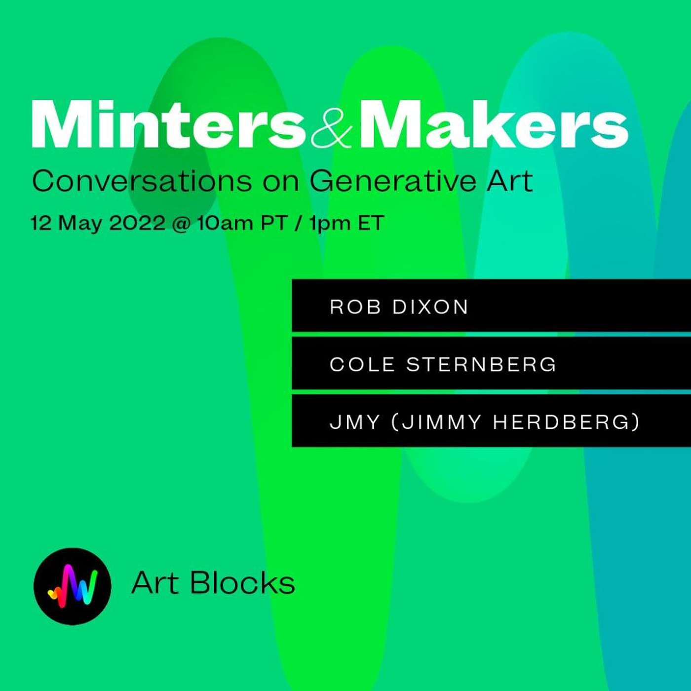 Aired: May 12, 2022Guests: Rob Dixon, Cole Sternberg, and JMY (Jimmy Herdberg)http://discord.gg/artblocks Twitter : https://twitter.com/artblocks_io Newsletter : https://artblocksinc.eo.page/subscribe