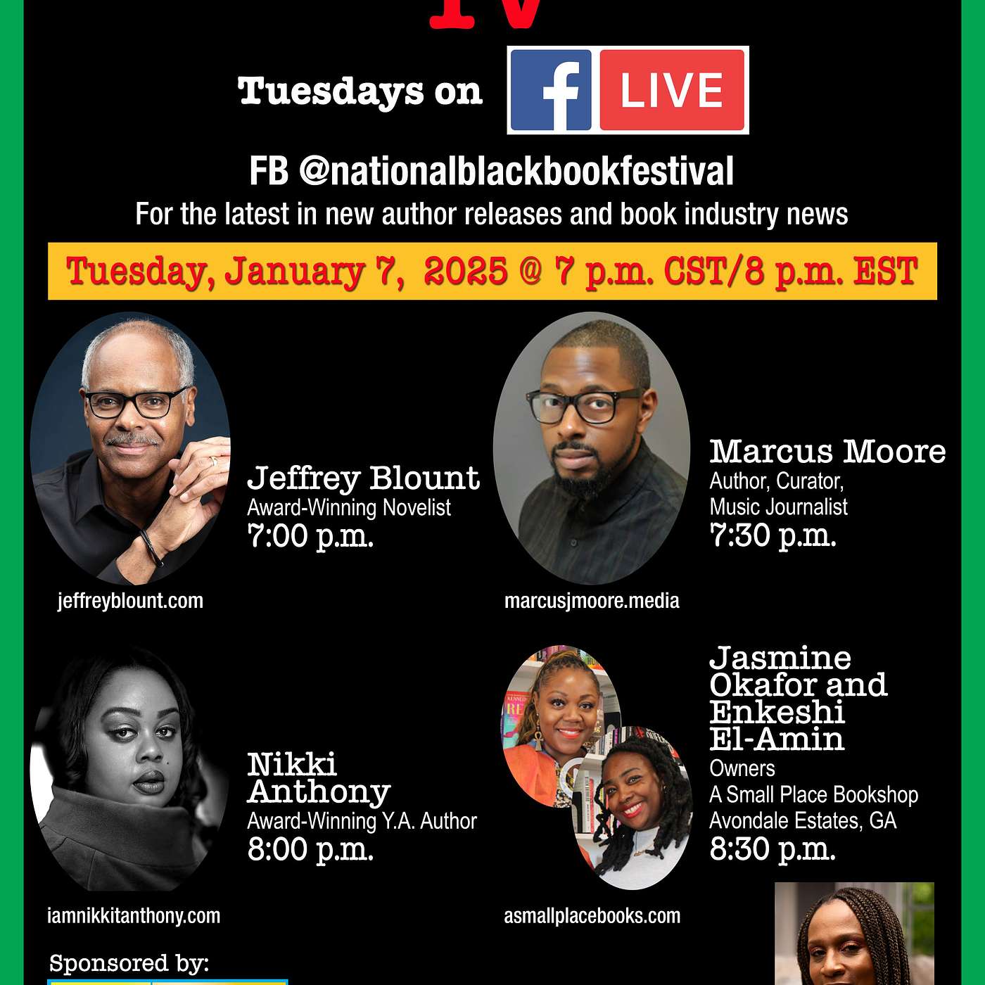 Black Authors Matter TV - January 7th Guests: Jeffrey Blount, Marcus Moore, Nikki Anthony, Jasmine Okafor and Enkeshi El-Amin
