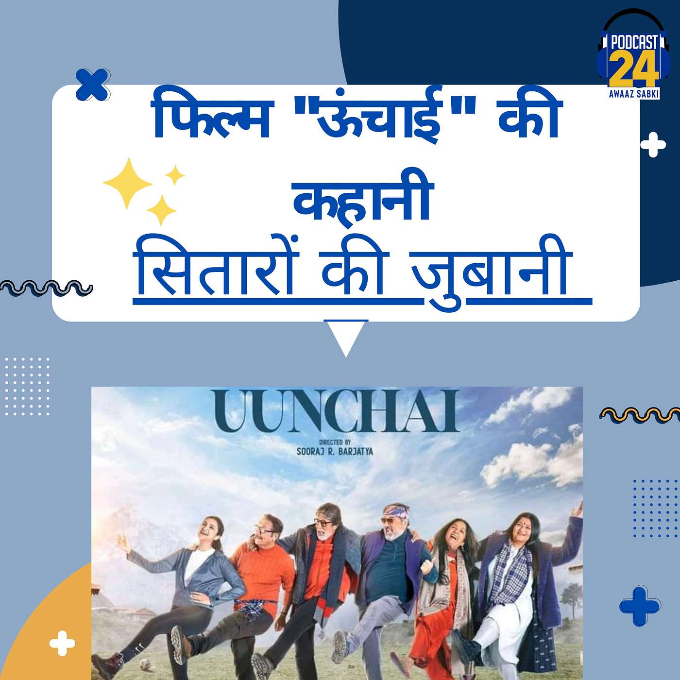 पॉडकास्ट 24 की स्पेशल सीरीज "Exclusive interview" में सुनिए आने वाली बॉलीवुड फिल्म "ऊंचाई" की स्टारकास्ट के साथ यह ख़ास बातचीत। फिल्म "ऊंचाई" में अमिताभ बच्चन, अनुपम खेर, बोमन ईरानी, डैनी डेन्जोंगपा, नीना गुप्ता, सारिका, परिणीति चोपड़ा मुख्य किरदारों में है सूरज बड़जात्या द्वारा निर्देशित इस फिल्म की स्टार कास्ट के साथ सुनिए यह ख़ास बातचीत पॉडकास्ट 24 आवाज़ सबकी पर।