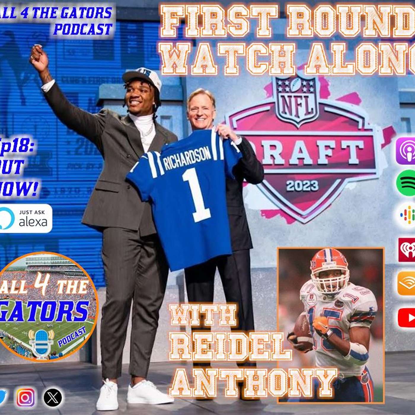 UF HOF'er Reidel Anthony returns to the show to watch the 1st round of the 2023 NFL Draft unfold live with the guys until Gators QB Anthony Richardson is taken! Learn what Reidel thinks of AR and his potential, what NFL and MLB stars he has trained, what WR duo gave him the confidence to play the position when he was a kid, and Sid talks about the Jets too much!
