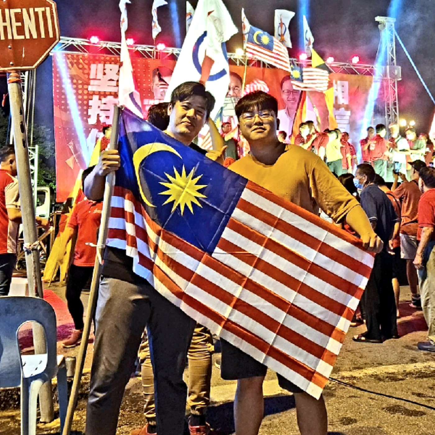 ps. 这封面图是两位host拿着国旗在大选前一天一起为更好的马来西亚加油!