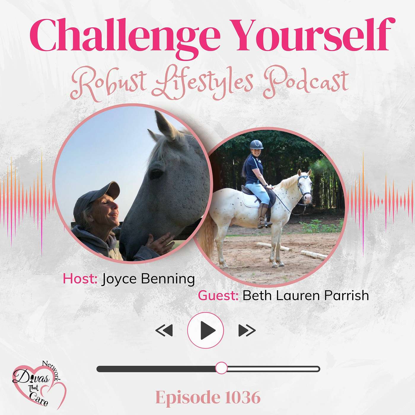 Come and listen while Host Joyce Benning interviews extraordinary people on her Robust Lifestyles Podcasts only on the Divas That Care Network. #DivasThatCareBeth Lauren Parrish, creator of Inspired Riding®, is a CHA Certified Level 3 Instructor for English & Western, Level 1 Equestrian Tai Chi Instructor, and Certified as a Hypnotherapist and Practitioner for RTT® (Rapid Transformational Therapy).She has been teaching for over 23 years and has the tools to enhance her clients' transformations rapidly and profoundly.For more info, kindly visit: www.inspiredriding.com
