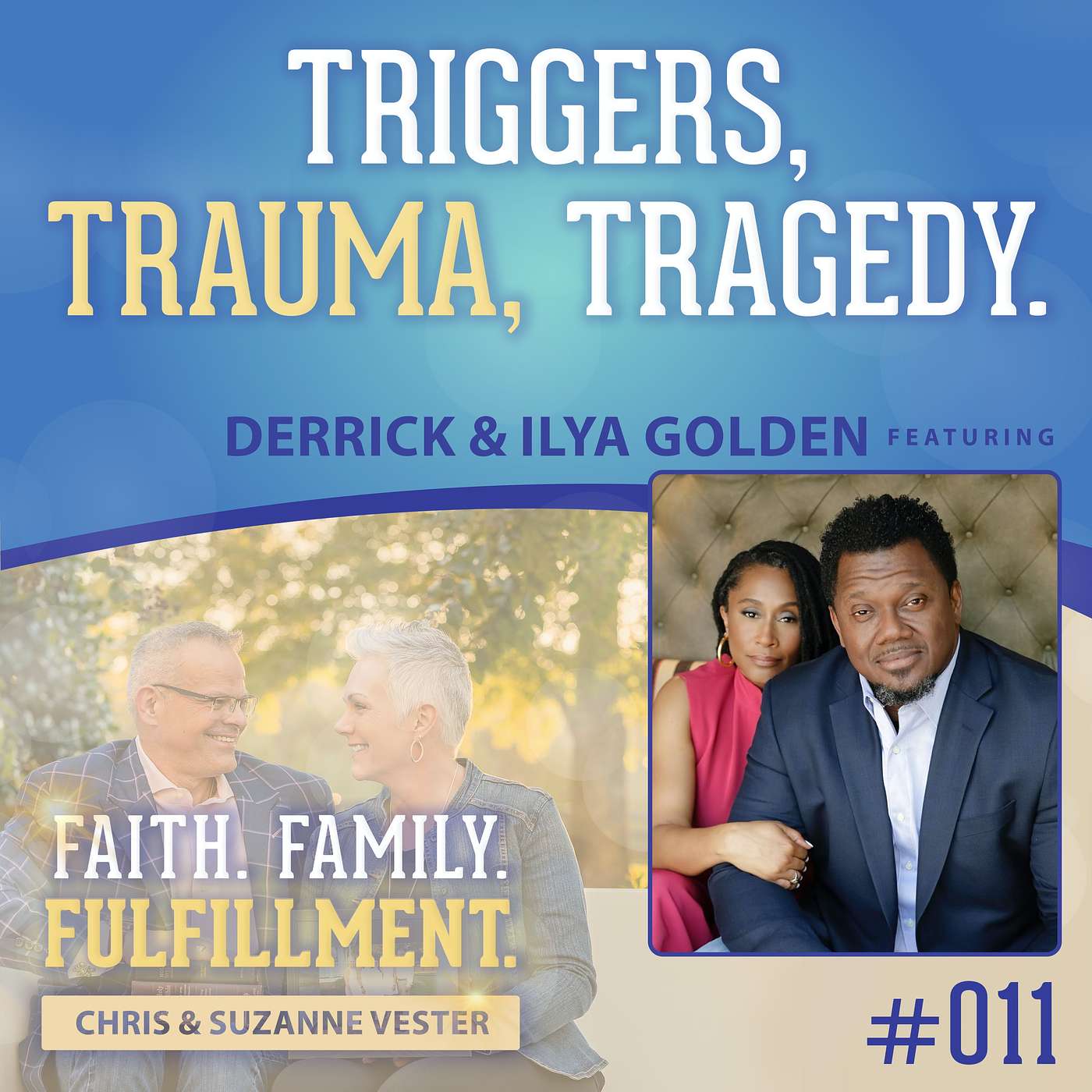 – Faith. Family. Fulfillment. with Chris and Suzanne Vester Episode 011 Derrick and Ilya Golden.Pastors Derrick and Ilya are lead pastors of Amazing Church. Their approach to leadership is vibrant, transparent, and genuinely focused on restoring hope and loving people to life. Their teaching style is with bold and raw compassion towards others. They love to see people encounter God with a new perspective and worship freely. Pastors Derrick and Ilya have been married for 26 years. They have 4 adult children, and a dog, Sir Bishop. Listen to this uplifting Faith. Family. Fulfillment. episode with Derrick and Ilya Golden about the Amazing Church.Here is what to expect on this week’s show:The leadership Derrick and Ilya provide for their church, their teaching style and how they both met!The focus of bringing others together at their church.How the marriage counseling Derrick and Ilya provide is different from the pastoral work they both do. Connect with Derrick and Ilya:Guest Links:Instagram-Pastor Derrick IG - https://www.instagram.com/derrickagolden/?hl=enPastor Ilya IG - https://www.instagram.com/ilyagolden/?hl=en Learn more about your ad choices. Visit megaphone.fm/adchoices