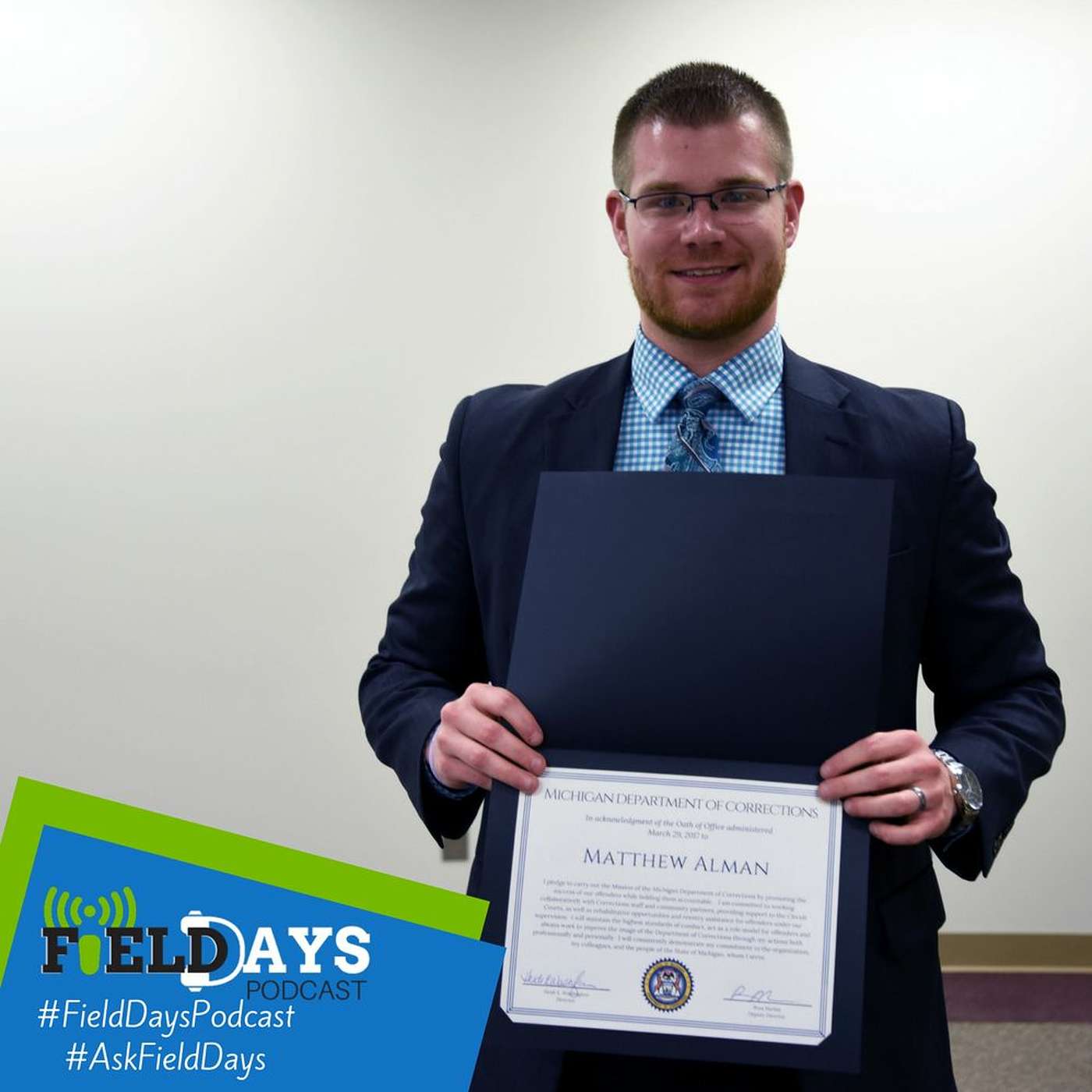 Matthew Alman was one of 13 agents that took their oath and received an official welcome to their new roles as parole and probation agents to the department by Deputy Director Russ Marlan and his executive staff. In this episode of Field Days, Matt talks about why he decided to become a parole agent and you'll hear some of the deputy director's remarks.