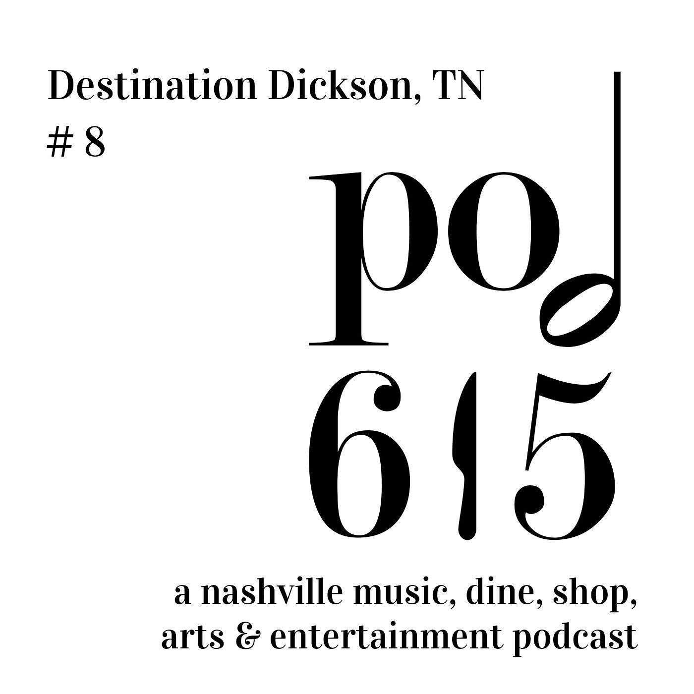 Pod615 #8 Destination Dickson, TN In this pod615 Destination Series, Destination Dickson, TN we visit this charming small town about 45 minutes west of Nashville. A city with a thriving downtown community of small businesses, shops and restaurants with an exceptional quality of life.