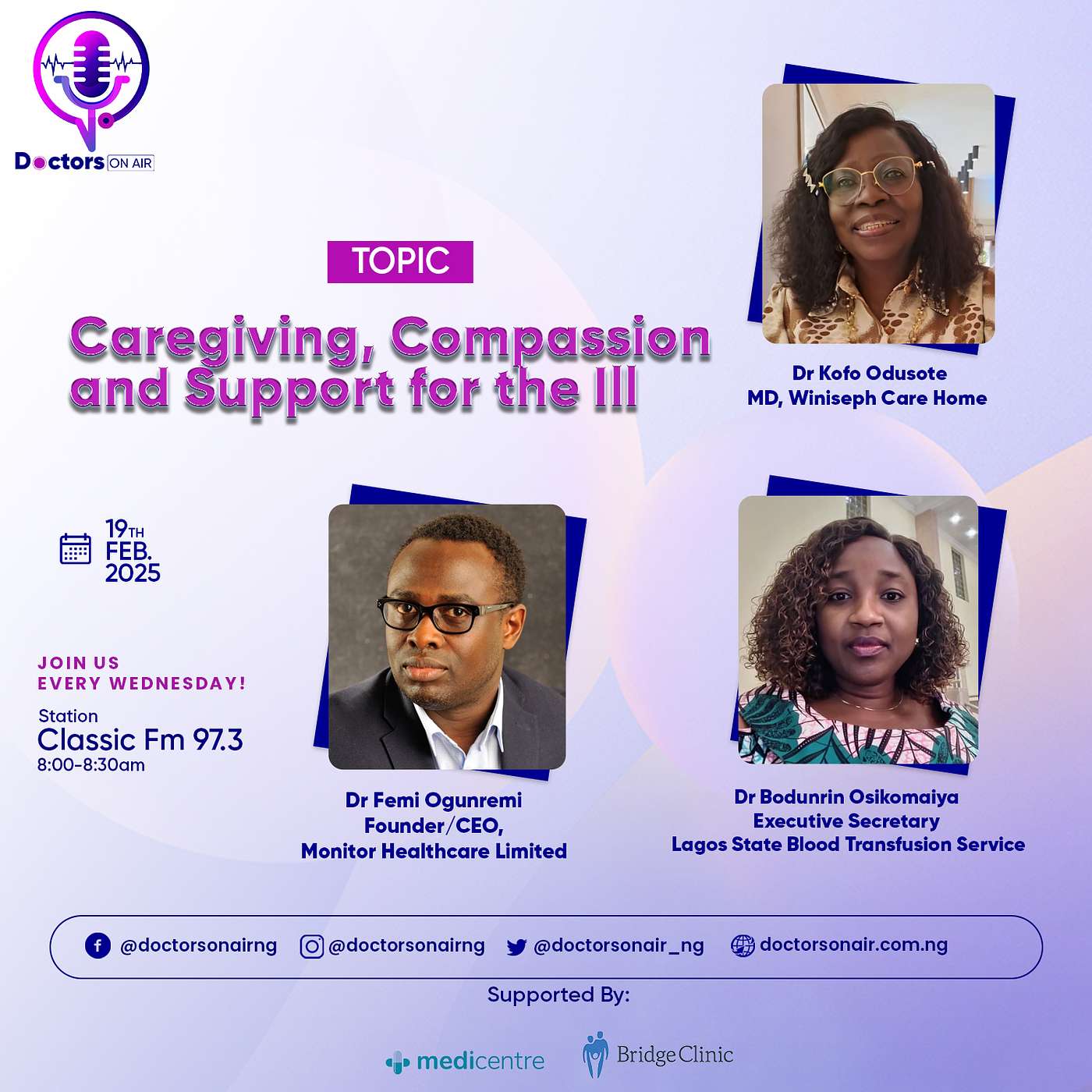 Do not forget to join us for our primetime broadcast every Wednesday at 8am (WAT) on Classic FM 97.3