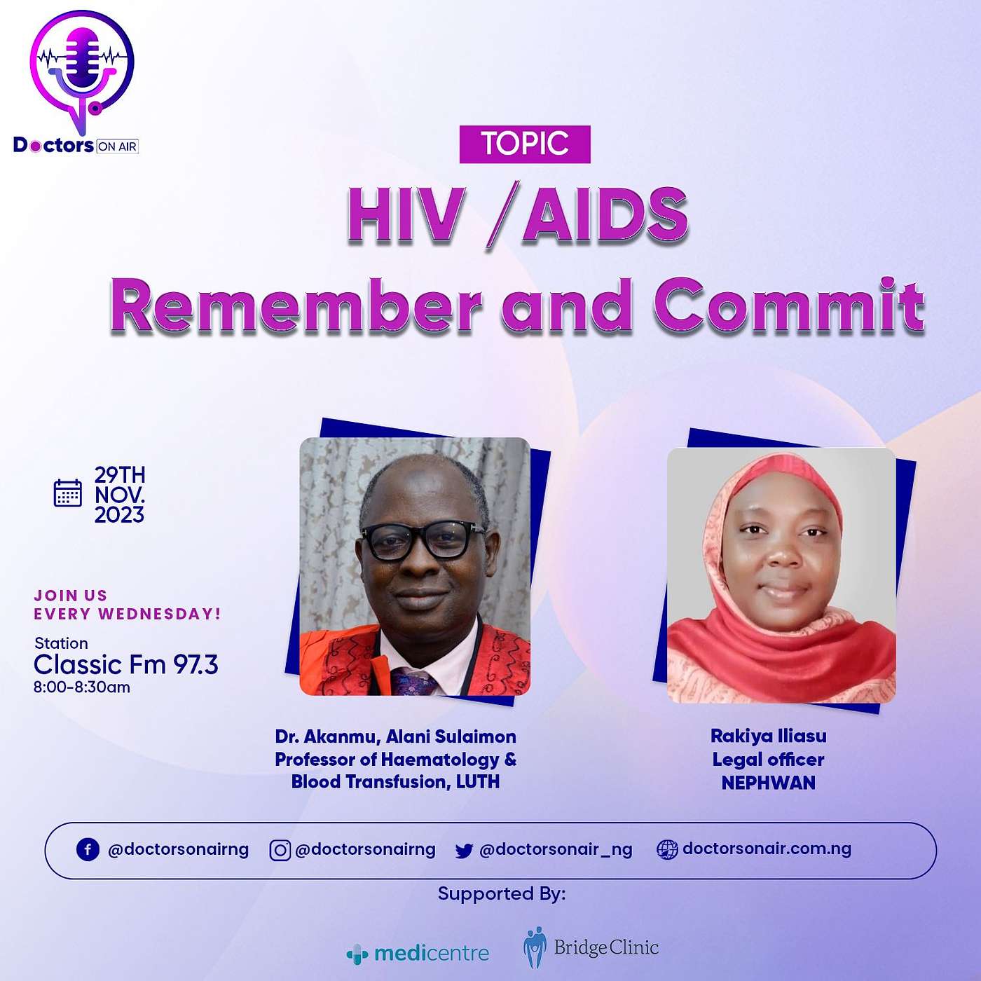 Also visit our website at: www.doctorsonair.com.ng, and follow us on Instagram, Twitter and Facebook: @Doctorsonair_NG
