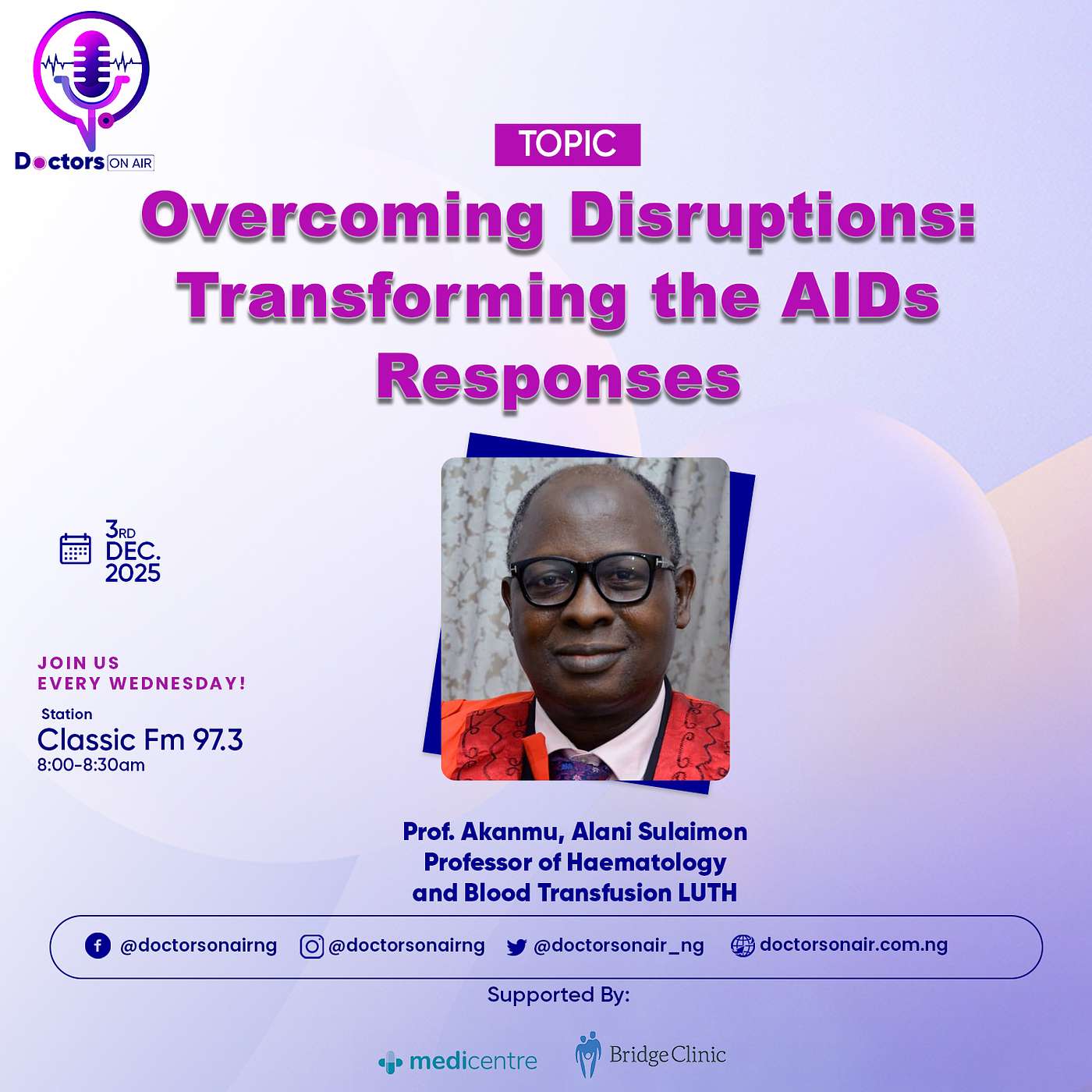 Do not forget to join us for our primetime broadcast every Wednesday at 08:00 am (WAT) on Classic FM 97.3