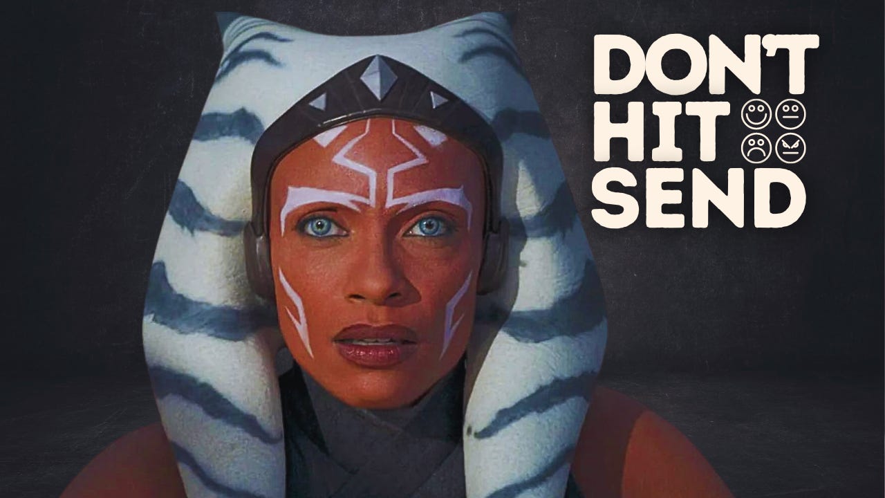 Ahsoka has learned not to hit Send.