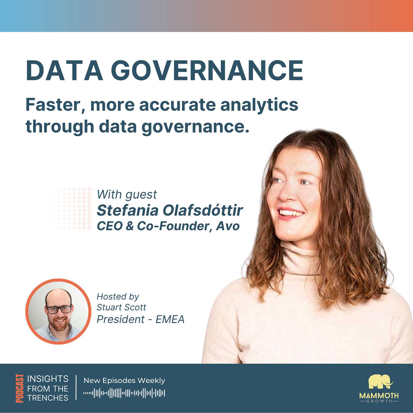 It’s the foundation of every technological initiative. But what happens if you build on a shaky foundation? Data governance is frequently missing from conversations about the value of product analytics, and Avo is out to change that. In this episode of the Mammoth Growth Podcast, Avo CEO and Co-Founder Stefania Olafsdottir chats with our EMEA President Stuart Scott about the challenges companies face with poor data governance, and how they can resolve these issues and spend more time building great products.