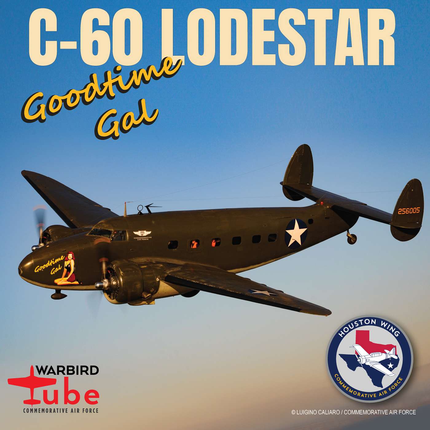 The C-60A is a twin-engine transport based on Lockheed’s Model 18 Lodestar. The Model 18 was a civilian airliner like the DC3, but slightly smaller and a little faster. During the War, the C-60 was used as a cargo aircraft, VIP transport, and paratroop transport. The C-60s also served stateside as tow aircraft for training glider pilots. Most C-47s were sent to fighting units overseas in Europe and Pacific theaters. The CAF’s C-60 Lodestar is assigned to the Houston Wing. She was built in 1943 and carries the name and Nose Art “Goodtime Gal.” She is configured as a paratroop transport, complete with jump lights and a static line hookup. Join Houston Wing members on this episode and learn more about "Goodtime Gal." Watch the video on YouTube Here.