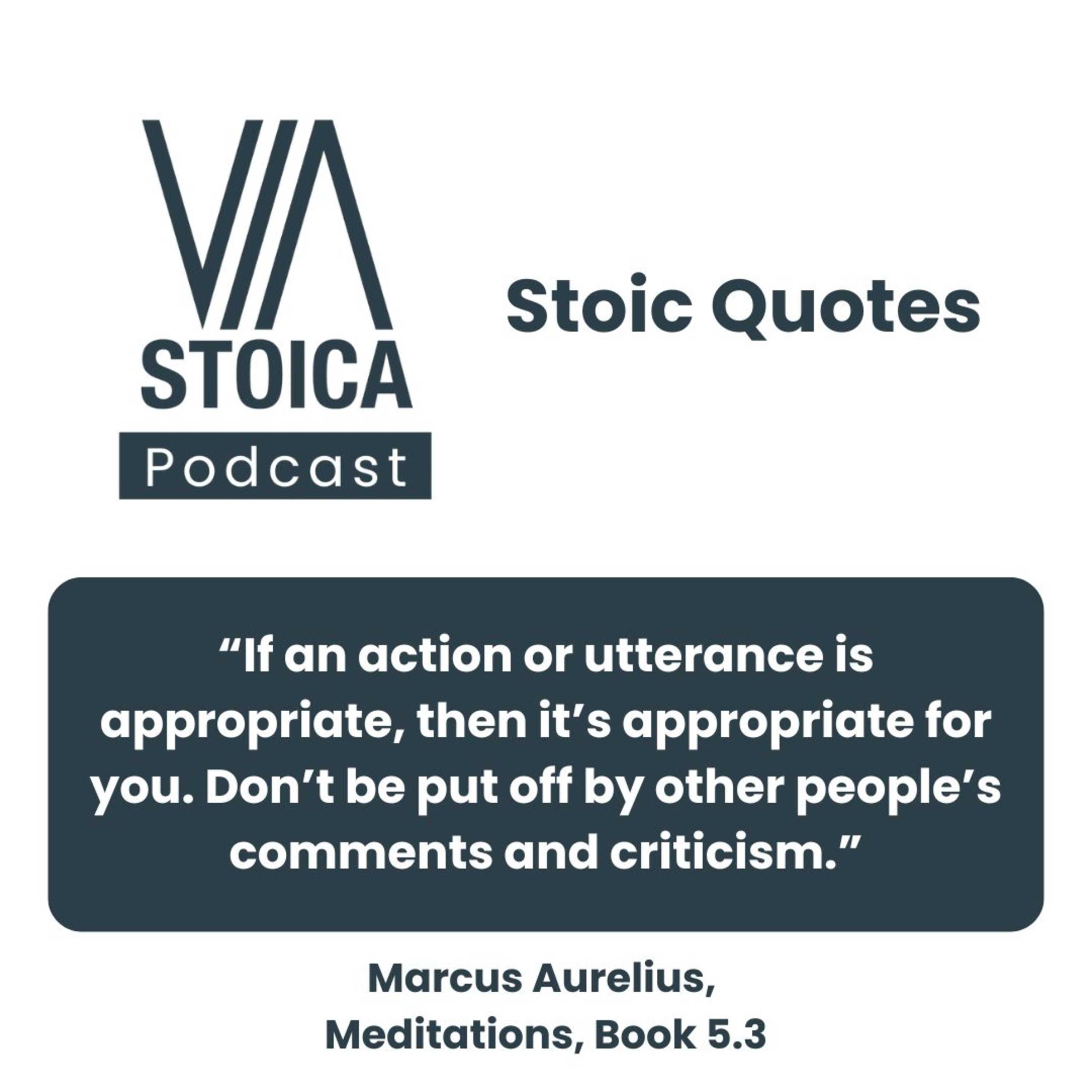 In this episode, we look at a passage by Marcus Aurelius from Meditations, Book 5.3, where he reminds himself how to act in the face of criticism and doubt: