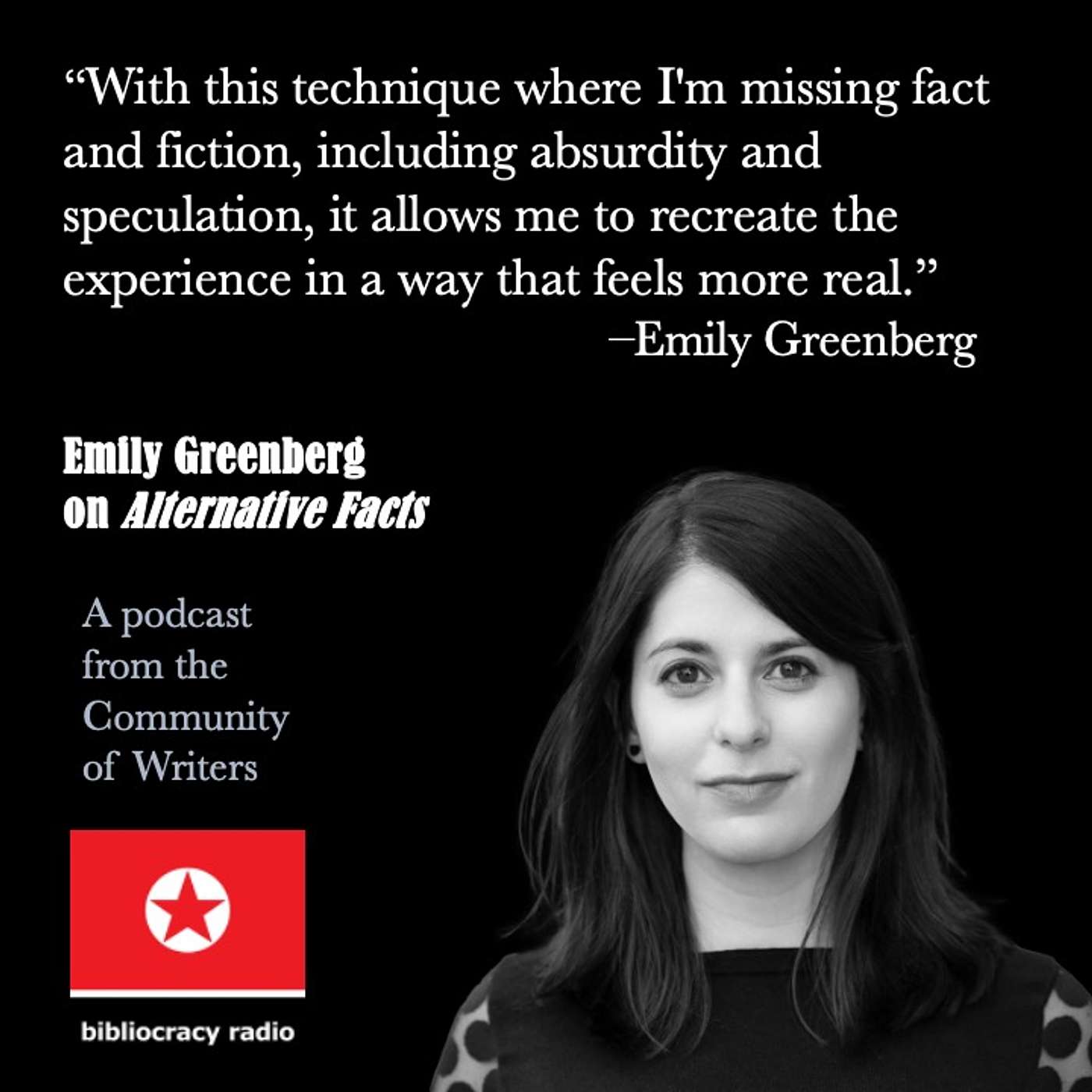 Emily Greenberg joins us this week. She is the author of a debut short story collection, Alternative Facts, one of the most remarkable literary, political, and sociologically urgent --- not to mention funny and smart --- books I’ve read lately. Inspired in part by the writing of Thomas Pynchon, by what passes for reality, and offering a media and political critique of our post-truth moment, it’s if the Zeitgeist had offered Greenberg a writing prompt, to which she carefully, elegantly, almost scientifically responded. In seven short stories, we are reminded of and challenged to reconsider “real” people and events, including Kellyanne Conway, George W. Bush, B.F Skinner, and the false emergency alert of a nuclear attack on Hawaii. Her work has appeared widely. Lately Greenberg compiles the online “Lest We Forget the Horrors” series for McSweeney’s.