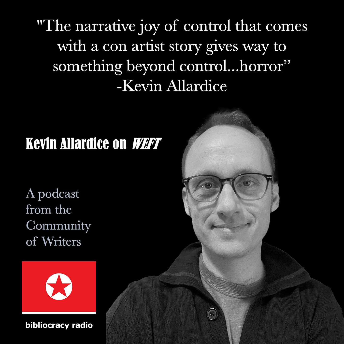 My guest this week is Kevin Allardice, the author of short stories and five novels, of which I have no read three. His most recent is Weft, and it’s a full-length work like his debut novel, Any Resemblance to Actual Persons. I’m also a big fan of his shorter works, closer to novellas but no less rich in voice, wit, fabulist or absurdist themes, each a celebration of association, word choice, digression and totally entertaining immersion in character and place. These are totally engaging romps, fast-paced, and wildly imaginative. He discusses all his books, his writing career, and especially to talk about and read from Weft, a kind of horror novel meets critique of late-stage capitalism, take-apart of the long con, and an examination of the collapse of a self-constructed identity. Wicked fun, thoughtful play, and both an embrace and elevation of the form. Here’s his website: https://kevinallardice.com/