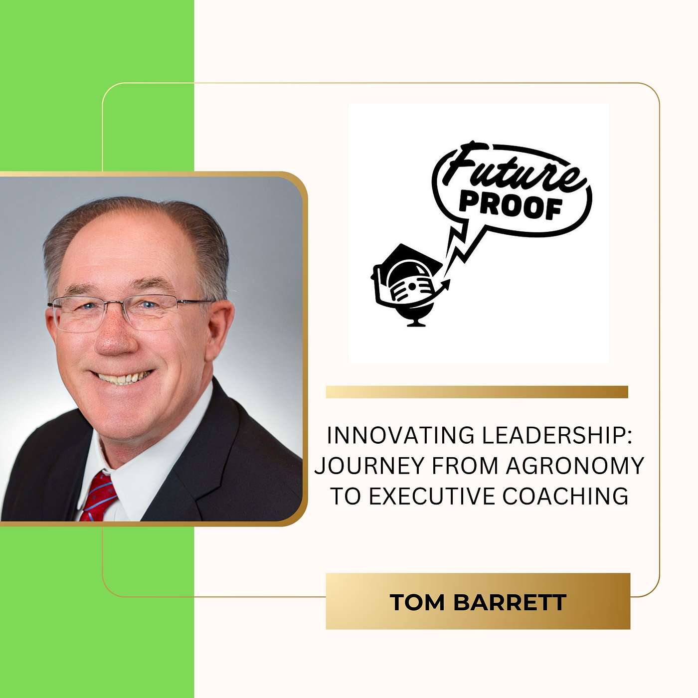 In this episode of FutureProof, meet Tom Barrett, an executive leader with over thirty years of experience driving corporate growth and innovation. From agronomy to executive coaching, Tom’s unique journey has shaped his approach to transforming businesses and leaders alike.