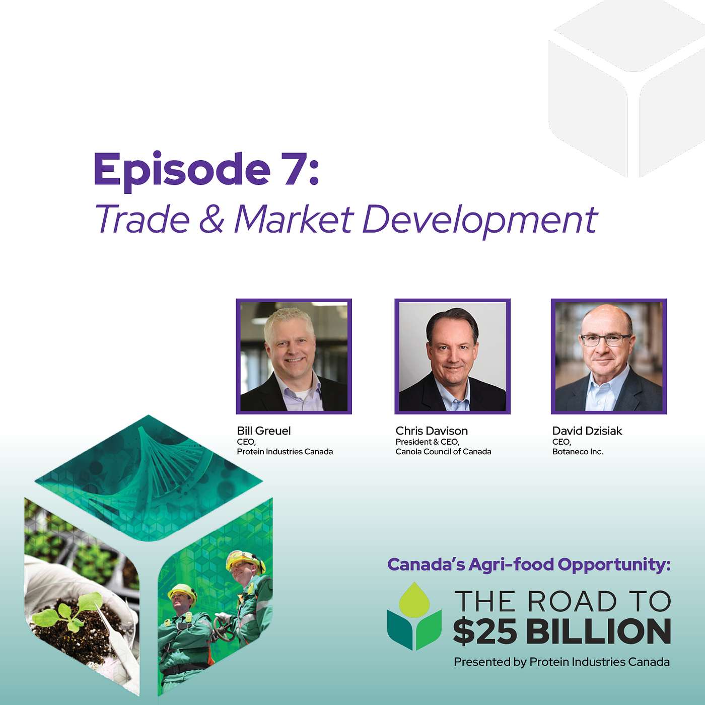 In this episode, Chris Davison, President and CEO of Canola Council of Canada, and David Dzisiak, CEO of Botaneco Inc., join Protein Industries Canada CEO Bill Greuel to talk about market development and trade, and the importance of strong trade relationships for Canada’s value-added industry. Digging into key points highlighted through The Road to $25 Billion, this episode explores the opportunity to build on our positive trade balance in commodities by exploring the opportunity to export more ingredients, food and bioproducts.