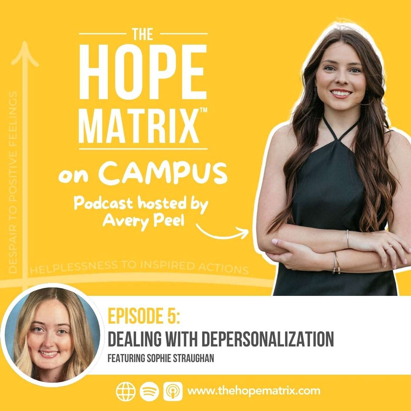 In this powerful episode of The Hope Matrix on Campus, host Avery Peel welcomes Sophie Straughan, who opens up about her journey with depersonalization—a dissociative disorder that Sophie began experiencing when she was a junior in high school. With openness and courage, Sophie struggled to find helpful ways to relieve her symptoms for months and is now sharing her story to help others find their way sooner.