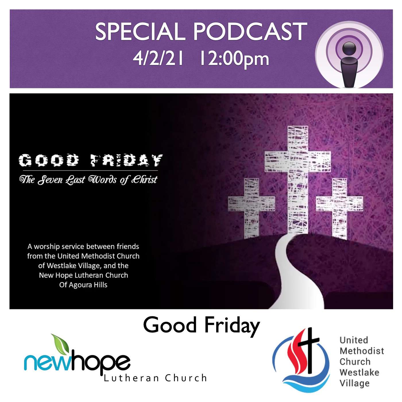 Audio of the shared online Good Friday service of New Hope Lutheran Church, Agoura Hills, and United Methodist Church Westlake Village on Friday, 4/2/21 at 12pm