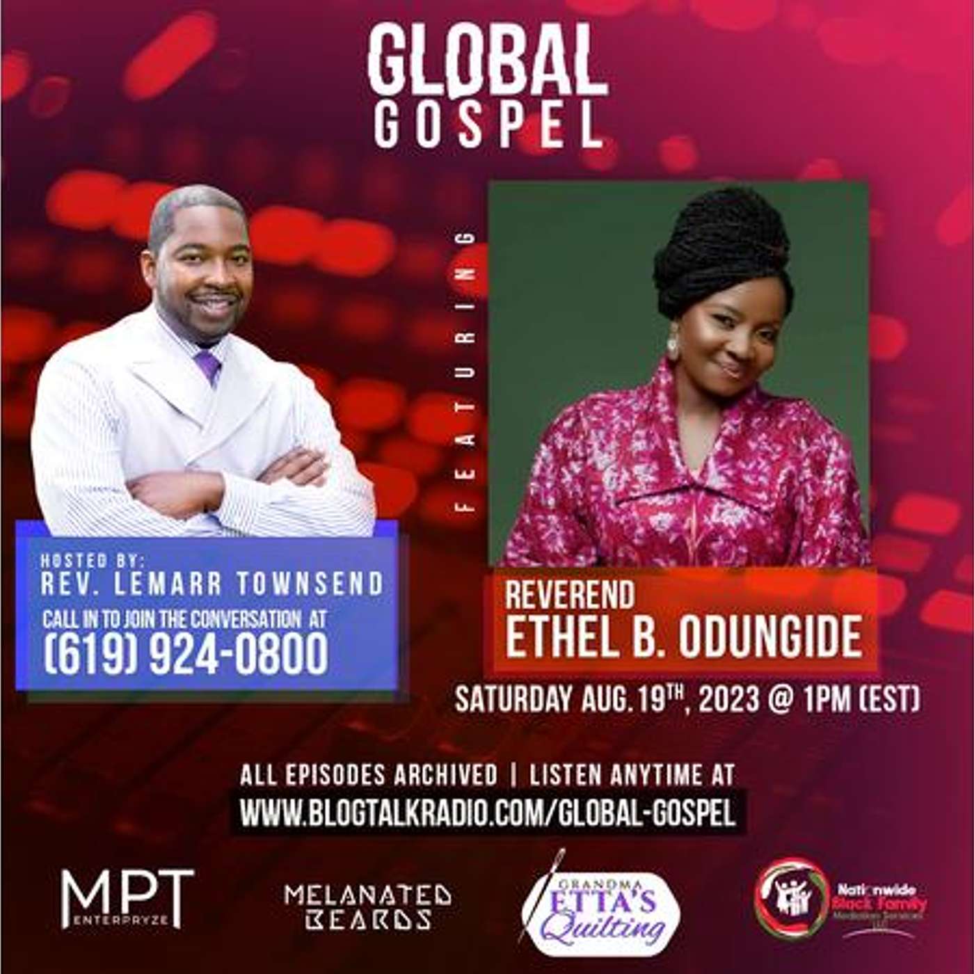 Saturday, August 19, 2023 - Join Global Gospel as we share with Rev. Ethel B. Odungide. She is an International Evangelist sharing the message that the name Jesus must be known. Rev. Ethel B. Odungide is also a renowned recording artist. Stay tuned as she ministers in word and song!
