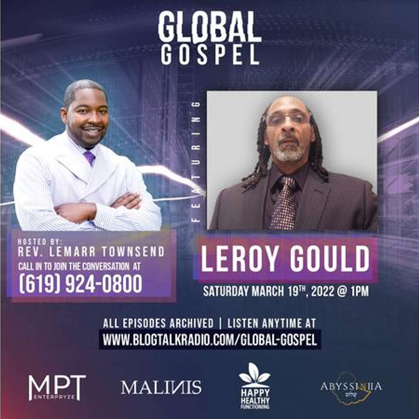 Saturday, March 19, 2022 - Listen to Global Gospel for a life changing event. Our special guest is Leroy Gould who will invite us to reflect on our past and move into our destiny. With good sportmanship and team work we can score, make our goal, tackle the enemy, and make a home run. With God all things are possible. Stay tuned and be blessed!