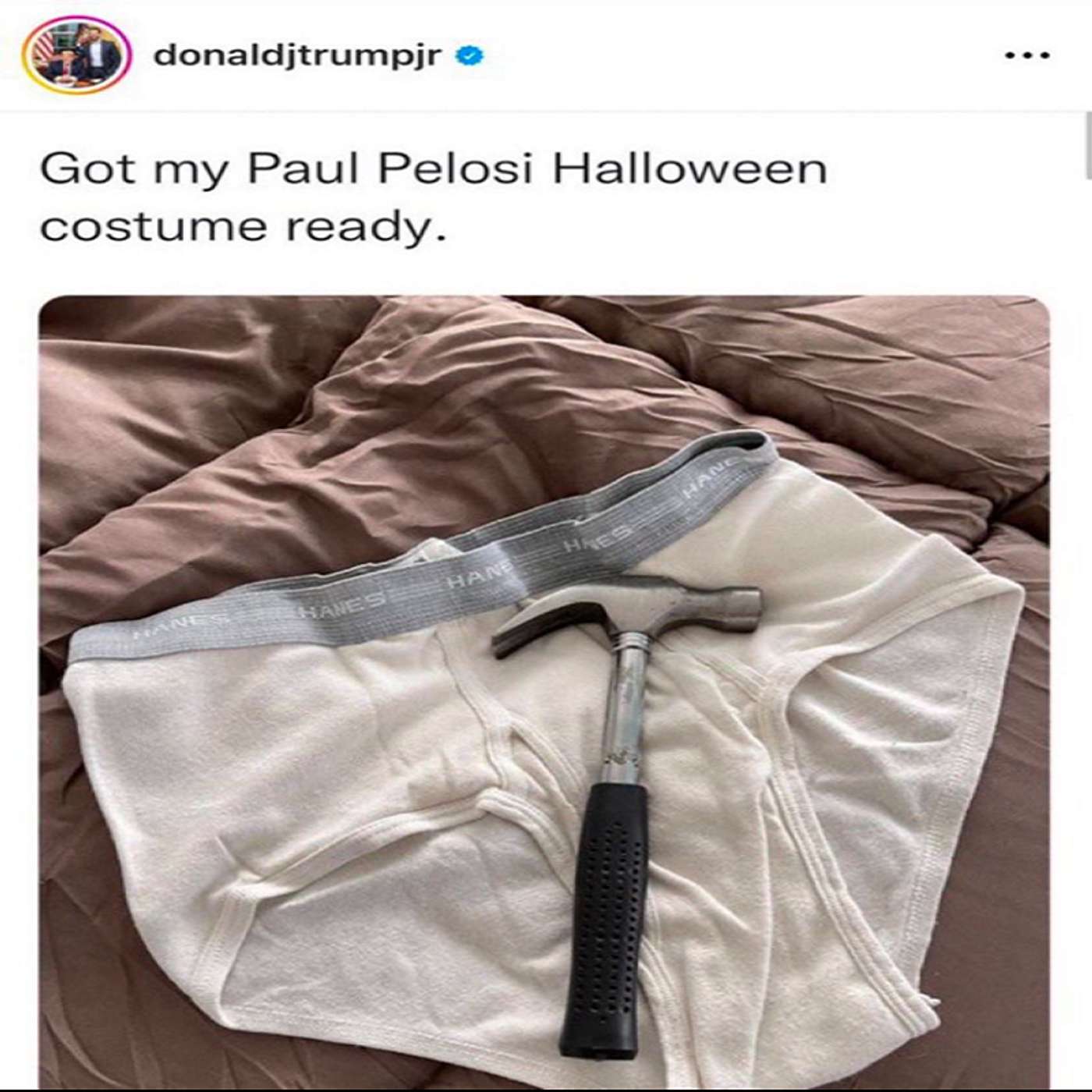 P.S. The show art is the tweet from Don Jr. following the attack on Nancy Pelosi's husband. That is the level of empathy that we are bringing. Thoughts and prayers