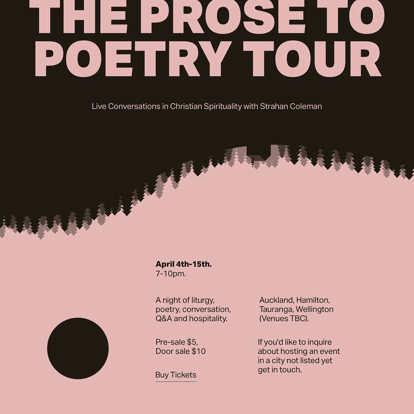 Throughout the North Island tour, I'll be sharing on living a life of poetry (maybe even sharing some of my own poetry God-willing), starting some discussion, Q & R and maybe even a little liturgy to ground us in the Great Tradition.