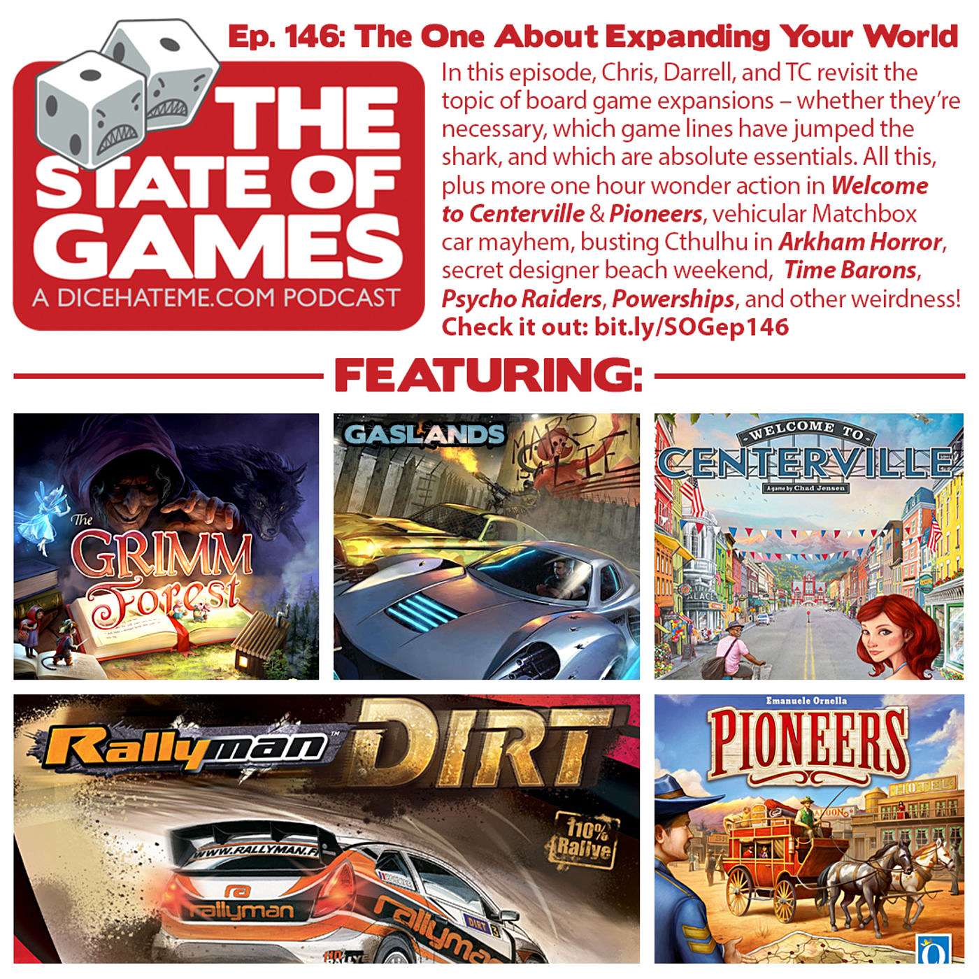 In this episode, Chris, Darrell, and TC revisit the topic of board game expansions – whether they’re necessary, which game lines have jumped the shark, and which are absolute essentials. All this, plus more one hour wonder action in Welcome to Centerville & Pioneers, vehicular Matchbox car mayhem, busting Cthulhu in Arkham Horror, secret designer beach weekend, Time Barons, Psycho Raiders, Powerships, and other weirdness!