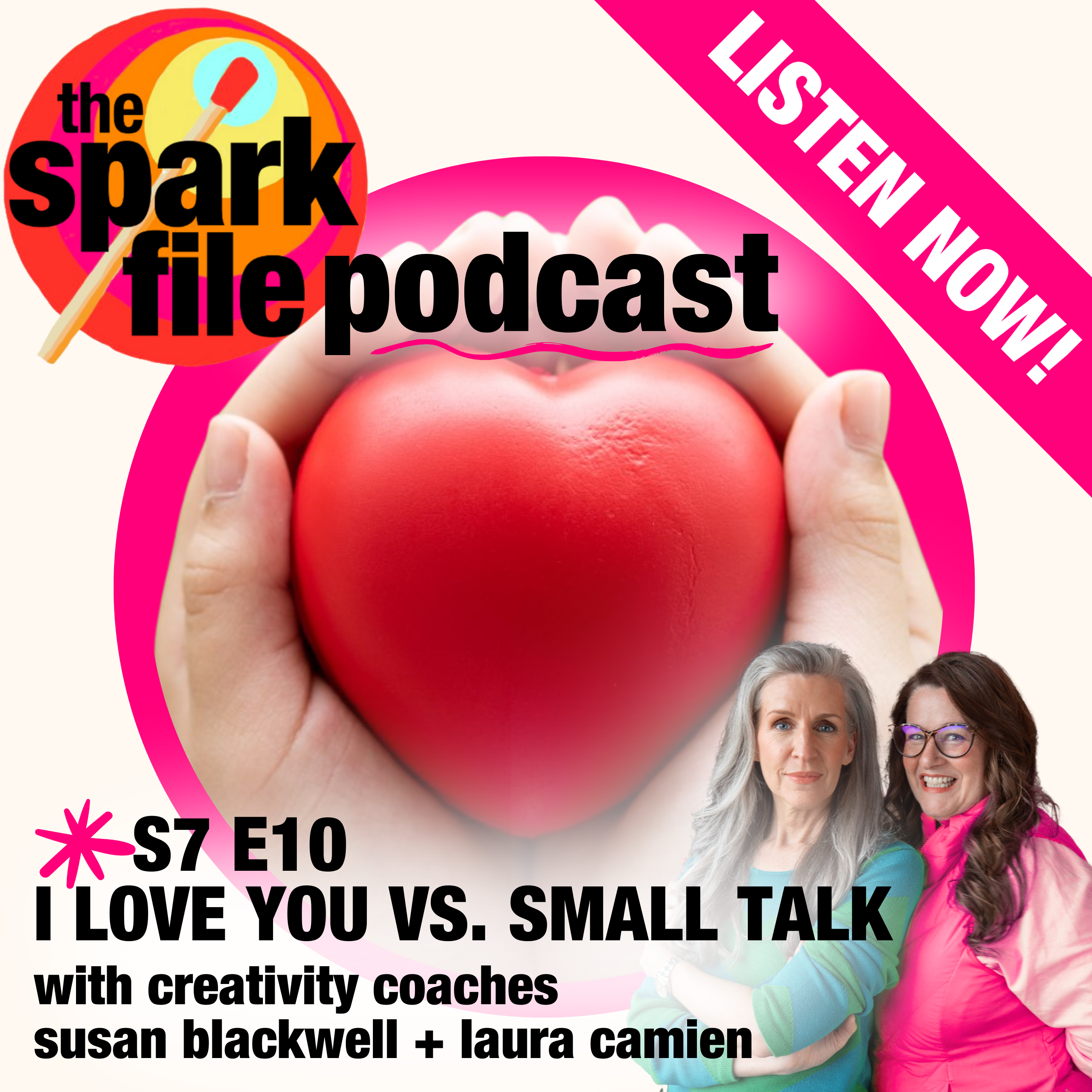 In this week’s episode of The Spark File, “I Love You vs. Small Talk,” Laura opens up a BIG spark (100 pounds of topic in a five-pound bag): love—romantic love, friend love, family love, self-love, love of strangers, love of pets… the whole sprawling, life-saving universe of it.