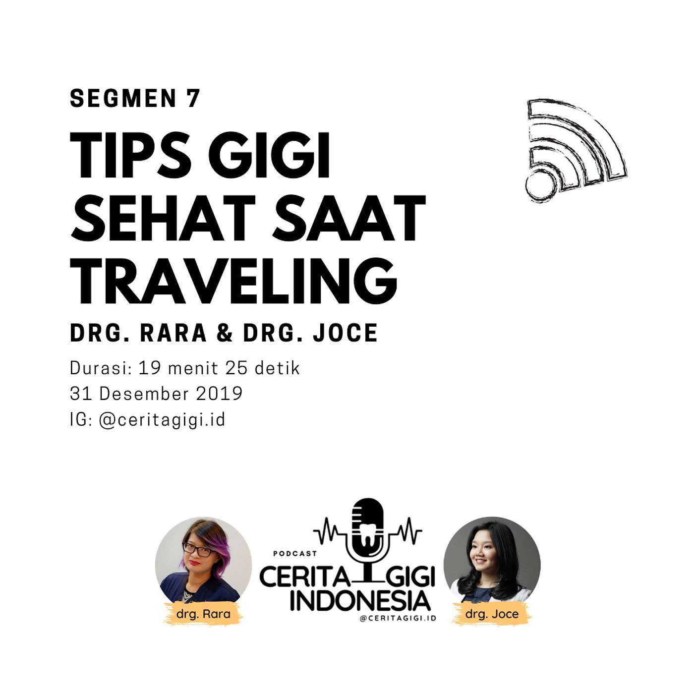Pada segmen kali ini, drg Rara dan drg Joce membahas tentang bagaimana menjaga kesehatan gigi dan mulut pada saat sedang traveling. Simak tips-tips yang mungkin sederhana tapi mudah terlupakan.