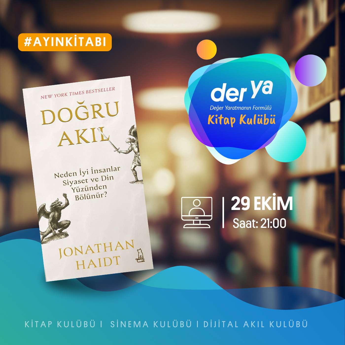 Kitap kulübümüzün 58inci buluşmasında sosyal psikolog Jonathan Haidt'in "Doğru Akıl: Neden İyi İnsanlar Siyaset ve Din Yüzünden Bölünür?" adlı kitabını konuştuk.