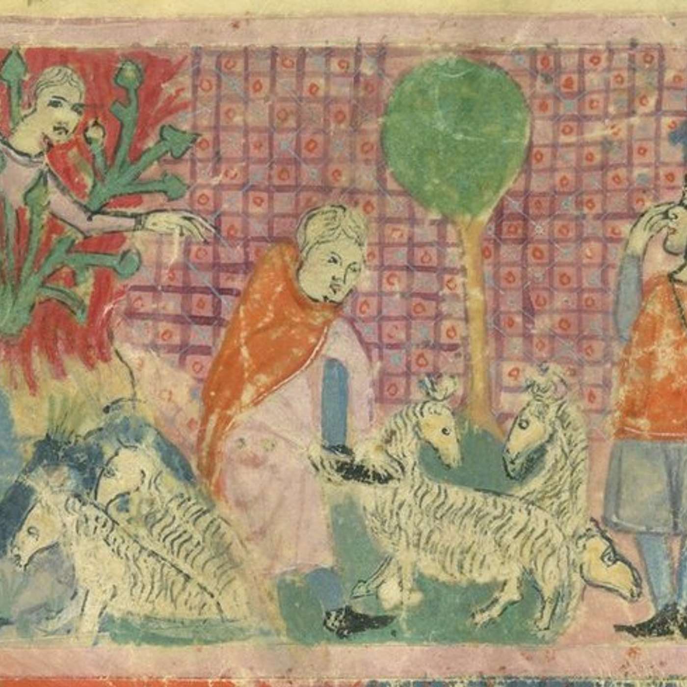 Image: Moses before the burning bush. From the Haggadah for Passover (the 'Sister Haggadah'), unknown artist, 14th century.