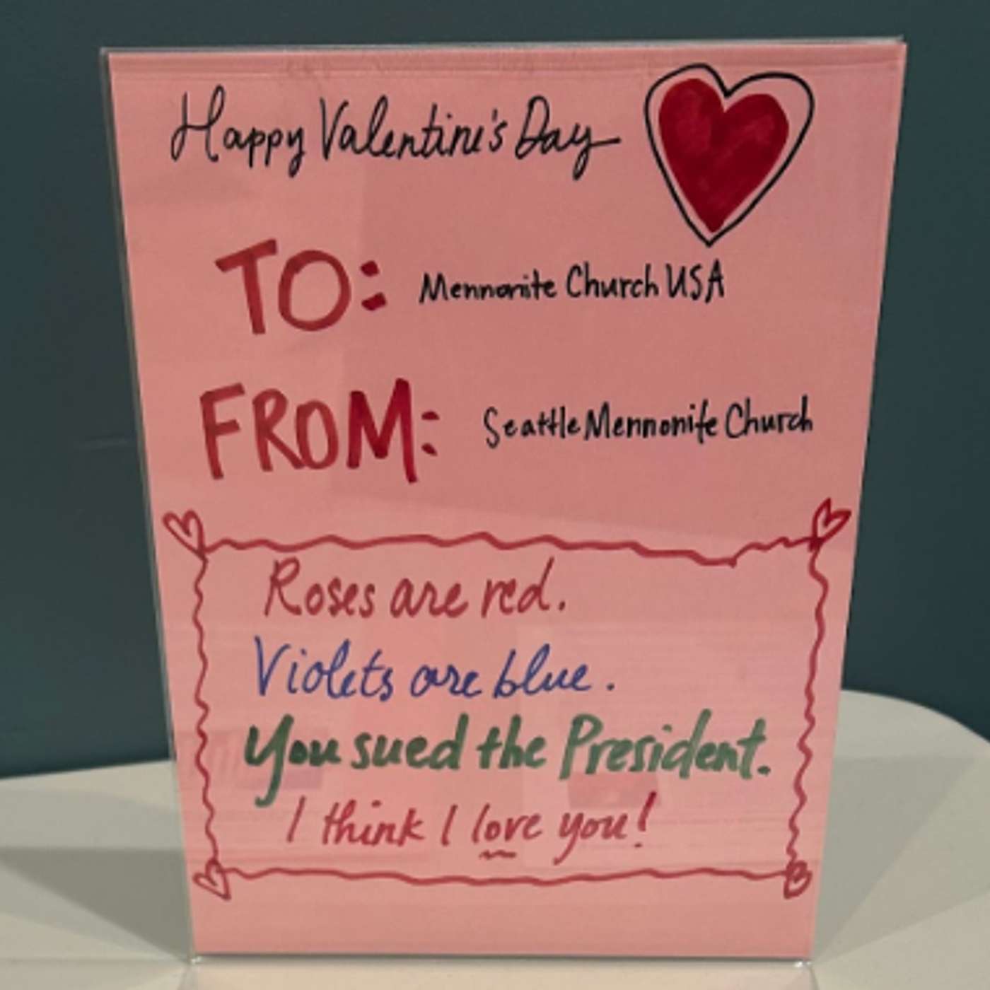 Fetus John the Baptist knew exactly who Jesus was, according to Luke. Adult John the Baptist sends emissaries to ask Jesus who he is. Jesus does not answer John’s question, but rather instructs the question-askers to simply report what they see and what they hear. It seems that, according to Jesus, his identity must be shown, enacted, embodied for it to be real. Similarly, our Anabaptist faith has a centuries-long history of being done, enacted, embodied. Our faith is a lived faith and has traditionally been proclaimed more in deed than in word. This is why the decision of our denomination to be the named plaintiff in a lawsuit against the Dept. of Homeland Security (Mennonite Church USA et al. v. United States Department of Homeland Security et al.) is completely in line with our 500-year history of following Jesus. Because our faith IS caring for our neighbor. So when the U.S. Government tries to prevent us from doing that, the free exercise of our religion is compromised and we must resist.
