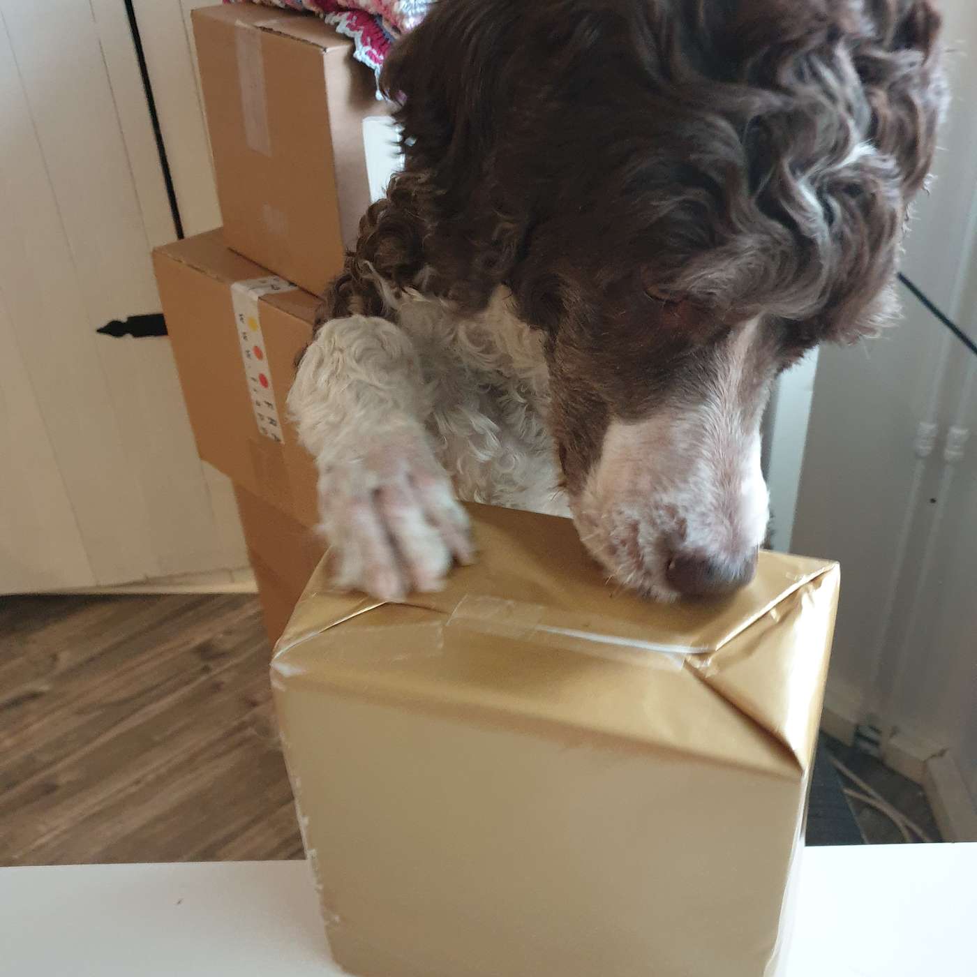 Vi har fått vår första present till gården. Vem kan låta bli att öppna en sådan goding direkt.