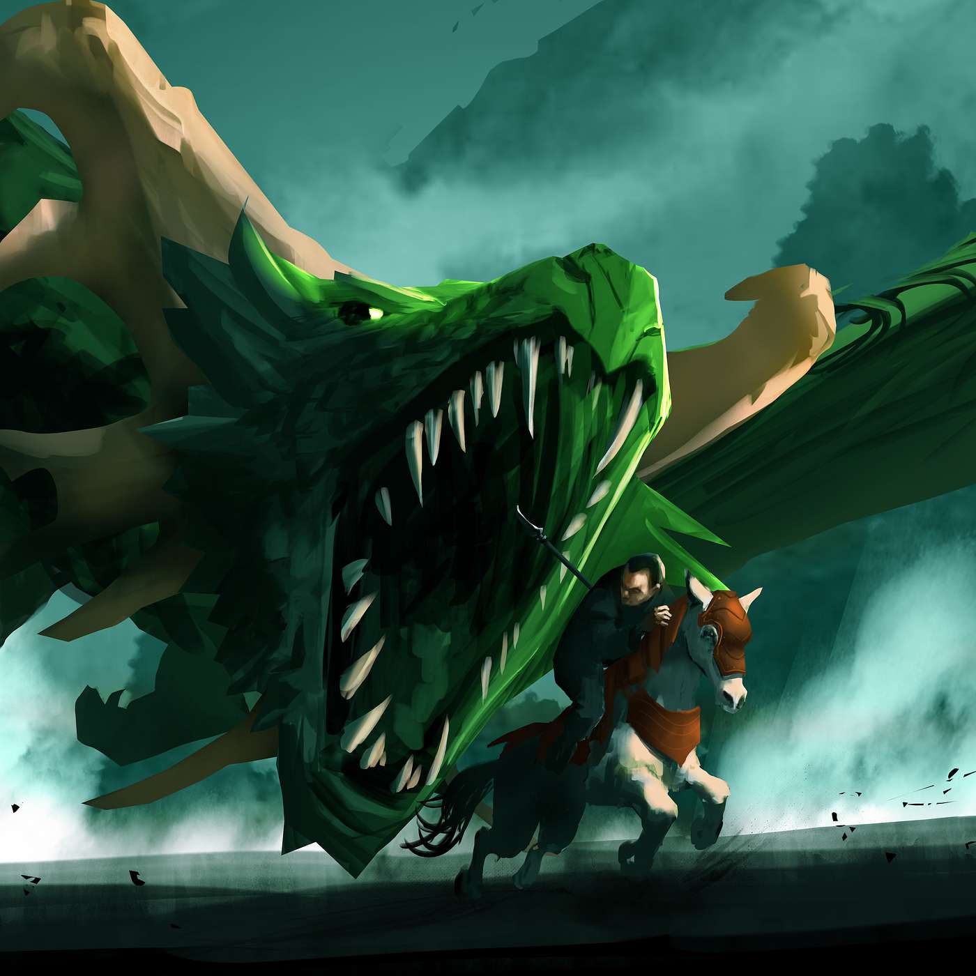 Heading south towards their destination of Bhal Faldihr, the God Bearers encounter a monstrosity with an appetite. In pursuit of a small figure in the distance, it notices the cart of unsuspecting adventurers, and turns its attention to the larger meal.