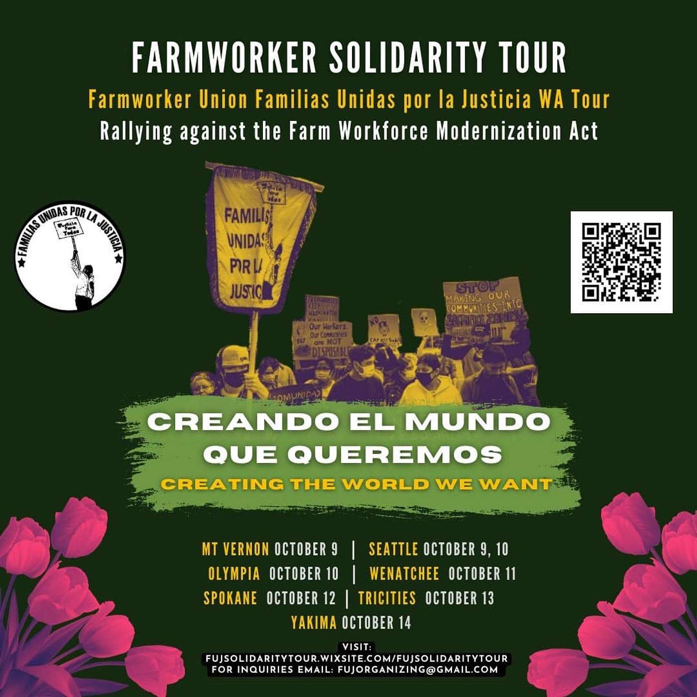 Support the Farmworker Solidarity tour! Members of Familias Unidas por la Justicia are taking a week off from the fields to join the tour and spread awareness about the Farm Workforce Modernization Act. Help make their participation in the tour possible by making a one-time donation today! Donations are also needed to cover the costs of venues, materials, housing and food. Donate here.