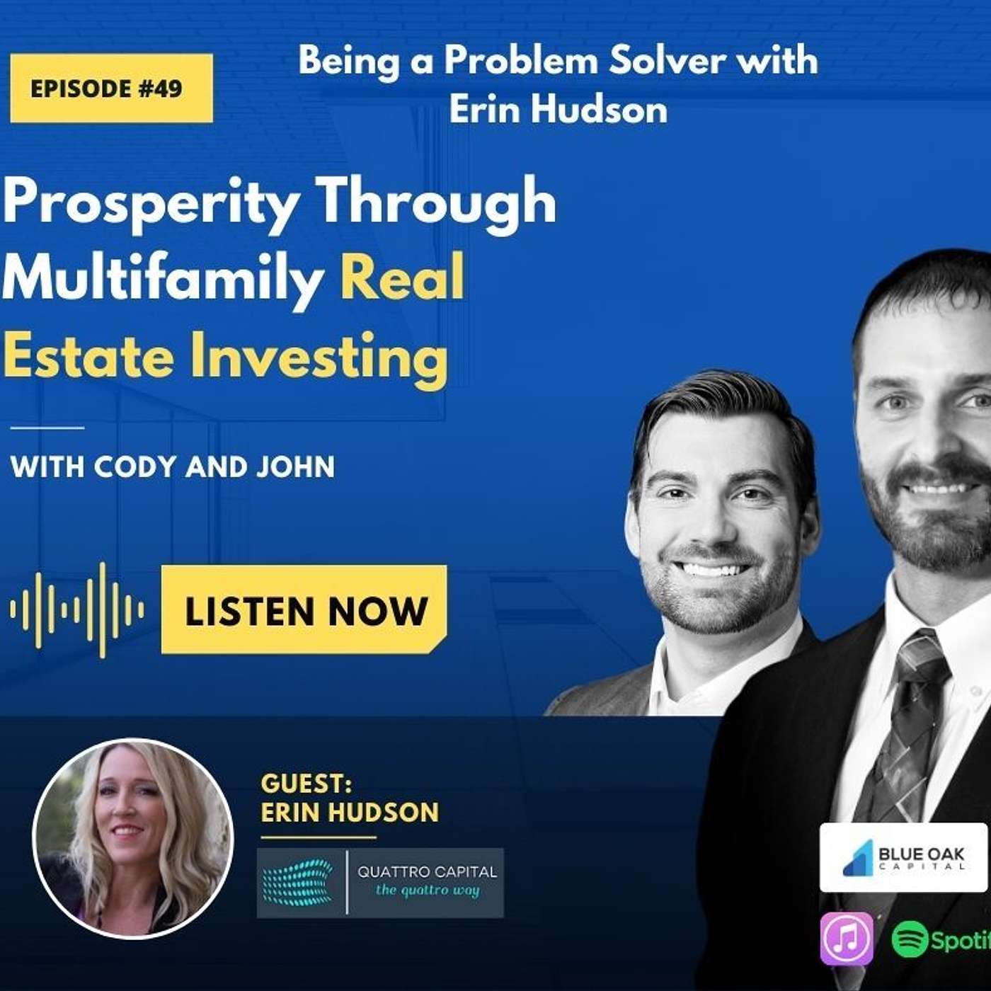 Our guest on today’s episode is Erin Hudson, Partner at Quattro Capital, real estate investor, business owner, financial professional, chiropractor, and mother of five. Erin, having very limited availability and resources, relied on her ability to be creative and a problem solver to create opportunities to grow her portfolio with significant momentum. Those opportunities led her to discover multifamily investing and her partners at Quattro Capital. Together, Quattro Capital is elevating their business to the next level.