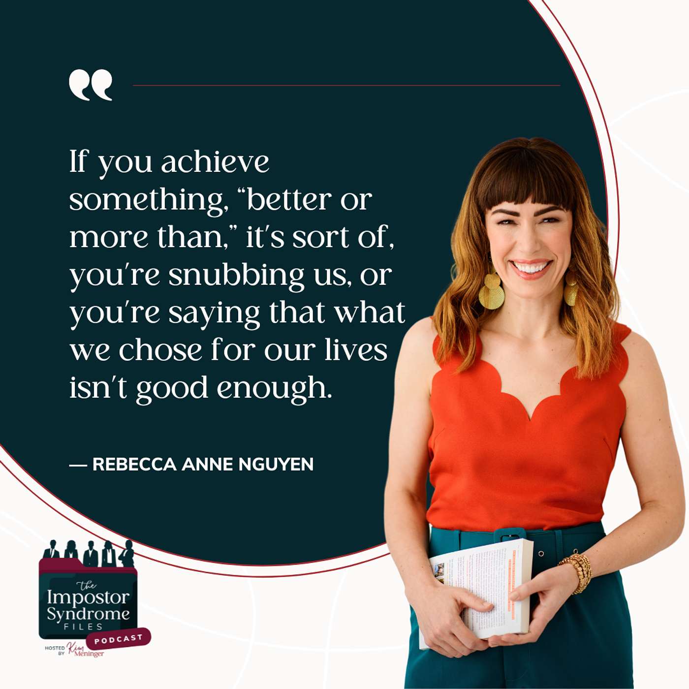 In this episode of the Impostor Syndrome Files, we talk about the fear of flourishing. Many of us grew up in families where we were made to feel that chasing our dreams meant getting too big for our britches. Or we’ve been afraid that if we become too successful, we’ll lose our friends or our community. My guest this week, Rebecca Anne Nguyen, author of the new novel, The 23rd Hero, shares her journey of overcoming self-doubt as she pivoted to novel writing. She also shares strategies for addressing our fears of flourishing so that we can live our best lives.