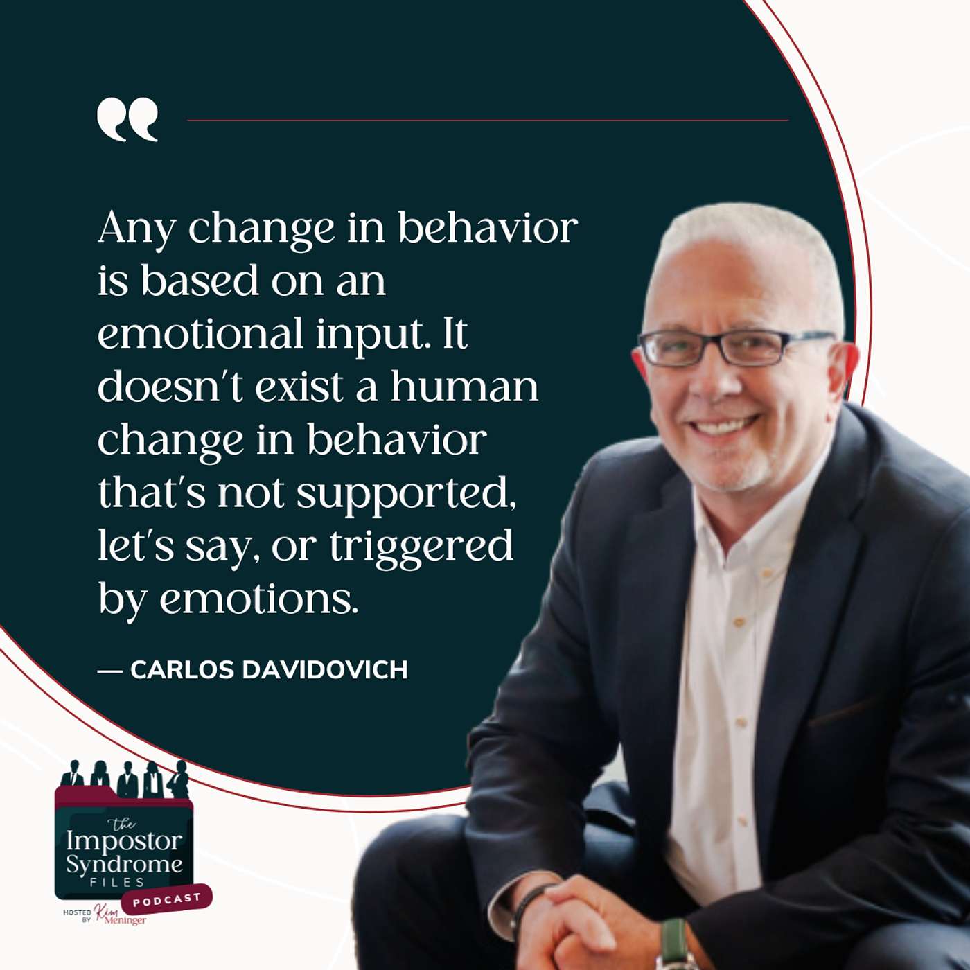 In this episode of the Impostor Syndrome Files, we talk about the human brain. We like to think that we’re rational beings who happen to have feelings. In actuality, we’re emotional beings who happen to think. This week, I’m talking with Carlos Davidovich, an executive coach and neuromanagement expert, about the five different characters, or aspects of our brains, that make up what he calls our inner team and the importance of understanding which one is in charge at any given time. Here we debunk the myth that you can remove emotions from a given situation and we discuss how all behaviors are triggered by our emotions. We also talk about the inner critic and how to loosen its power.