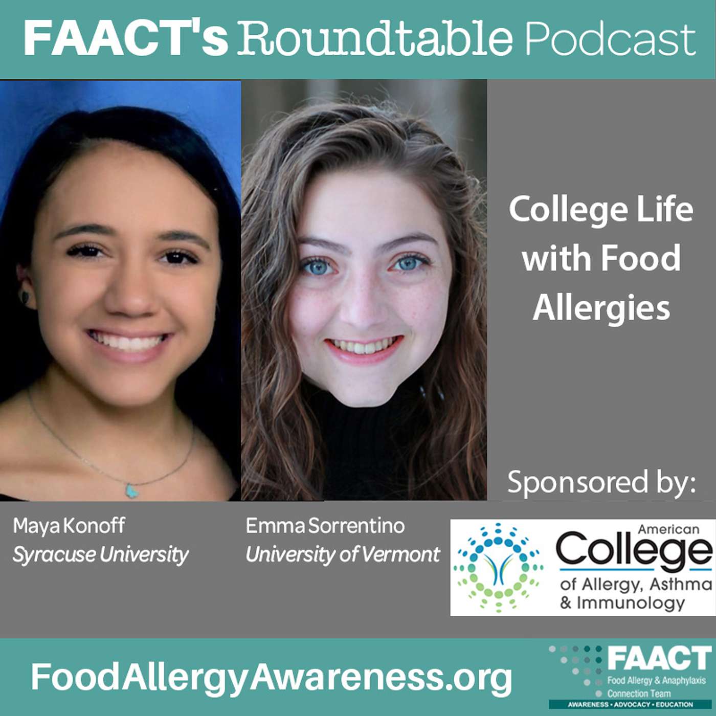 In this episode we hear directly from two college students, Maya Konoff (Syracuse University) and Emma Sorrentino (University of Vermont), who are enjoying traditional college life while managing food allergies. Hear their very candid and authentic thoughts about campus dining, roommates, and dating.