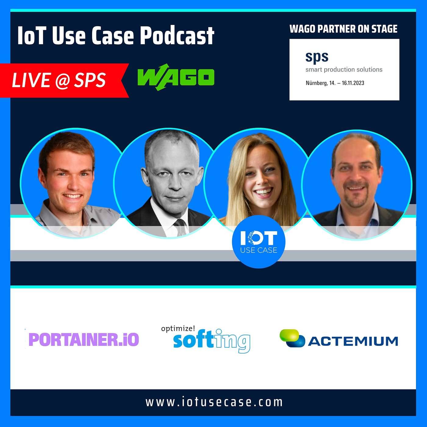Special Podcast Folge @ SPS 2023! Die 116. Folge des IoT Use Case Podcasts wurde live auf der SPS-Messe in Nürnberg aufgenommen. Ing. Madeleine Mickeleit begrüßt dabei drei WAGO-Partner on Stage: