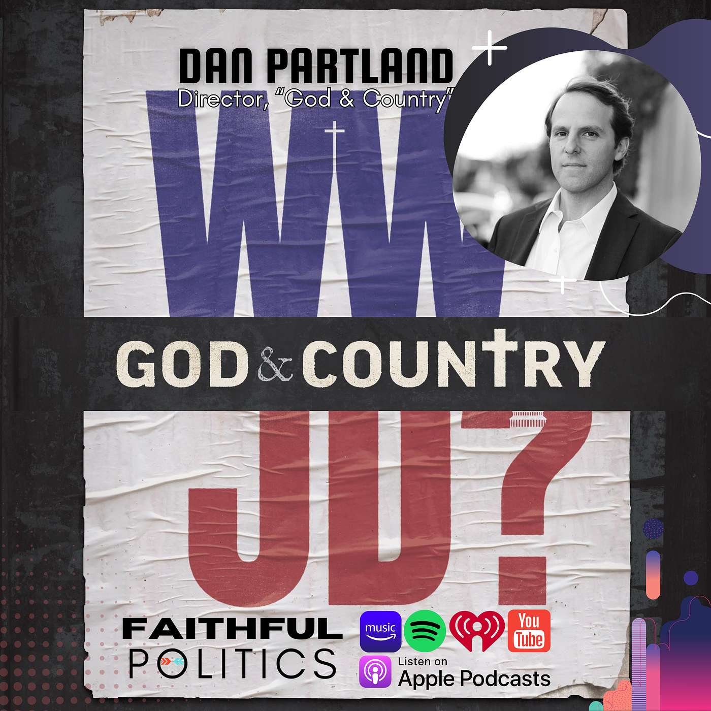 In this episode of Faithful Politics, hosts Will Wright and Pastor Josh Burtram engage in a compelling conversation with veteran documentary producer and director Dan Partland. They delve into Partlin's latest film, "God and Country," exploring its thematic focus on the intersection of faith and politics, particularly Christian nationalism's impact on American democracy and faith itself. The discussion covers Partlin's career trajectory, his approach to documentary filmmaking, and the motivations behind "God and Country," offering insights into the complex dynamics of political and religious identities in the United States. The conversation also touches on the challenges and responsibilities of addressing such a polarizing topic, aiming to foster a deeper understanding among viewers and encourage critical reflection on the roles of faith and nationalism in shaping public discourse and policy.