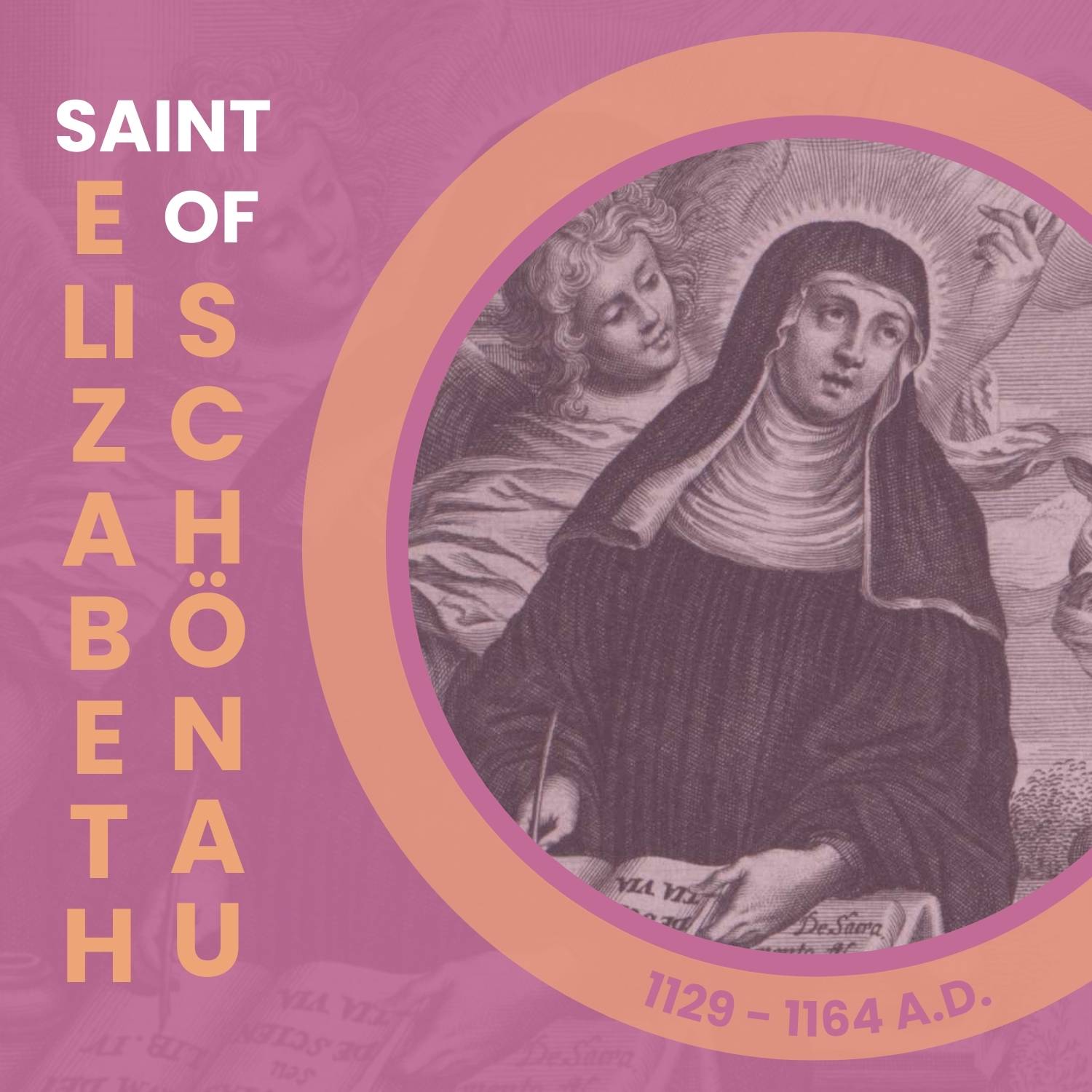 Experiencing many visions of saints, angels, and the Virgin Mary throughout her life, Elisabeth became a well known Benedictine nun who people sought out for her wisdom and guidance. Although her visions were never confirmed as legitimate, her heroic life of virtue and devotion have been well recorded.