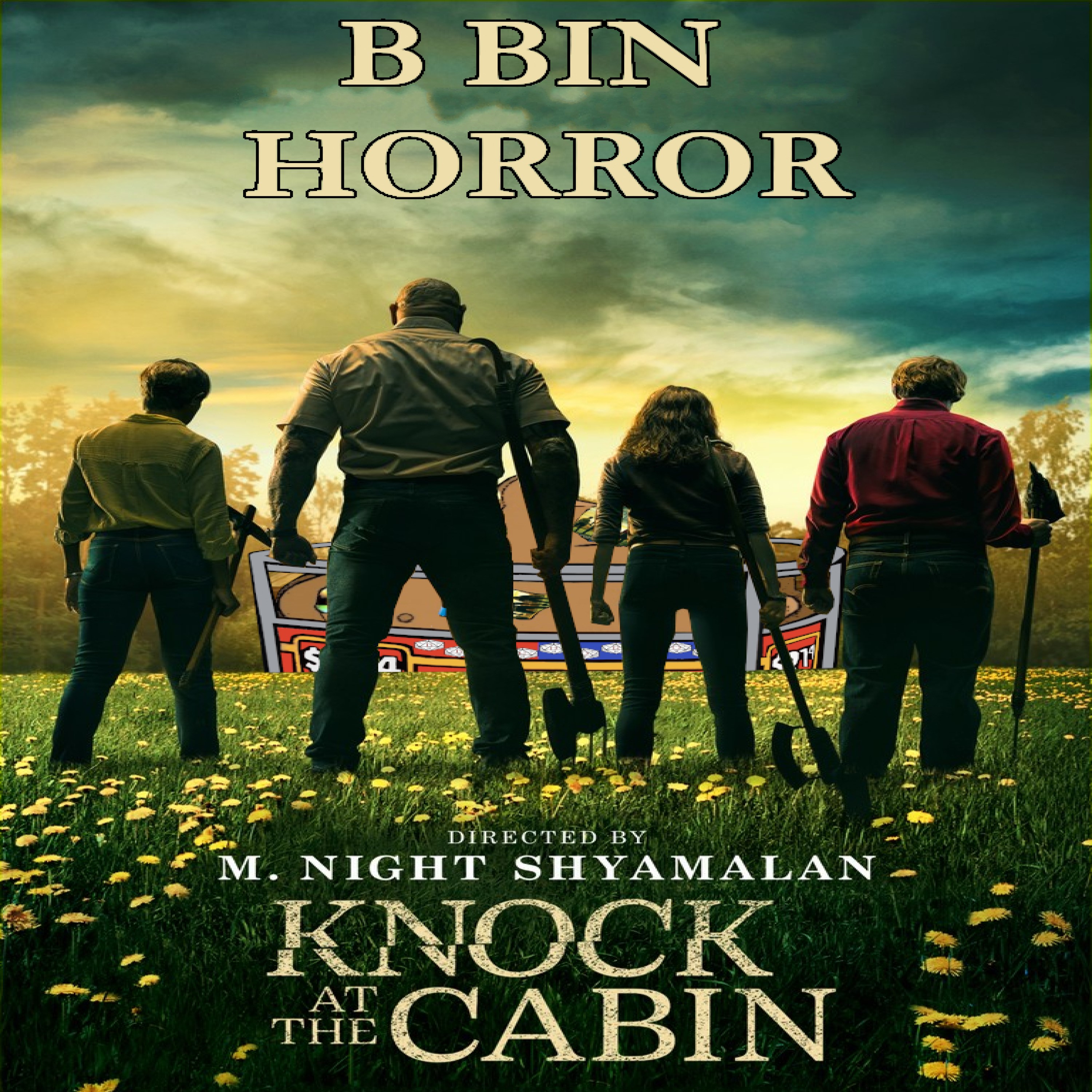 Hello and welcome back to another episode of B Bin Horror! On this week's episode we talk about the 2023 apocalyptic horror film, Knock at the Cabin. Knock at the Cabin was written and directed by M. Night Shyamalan and was based on the 2018 novel, The Cabin at the End of the World. The film stars, Dave Bautista, Jonathan Groff, Ben Aldridge, Nikki Amuka-Bird, Kristen Cui, Abby Quinn, and Rupert Grint. On this week's episode we compare the four people who enter the cabin to the four horsemen of the apocalypse, we find out who Dylan would sacrifice if put in the situation of the main characters and we discuss at what point in the film would we believe the intruders. If you like what you hear please follow us on Instagram and Facebook @bbinhorror. You can also send us emails at bbinhorror@gmail.com and please don't forget to subscribe to B Bin Horror on whatever podcast platform you listen on!