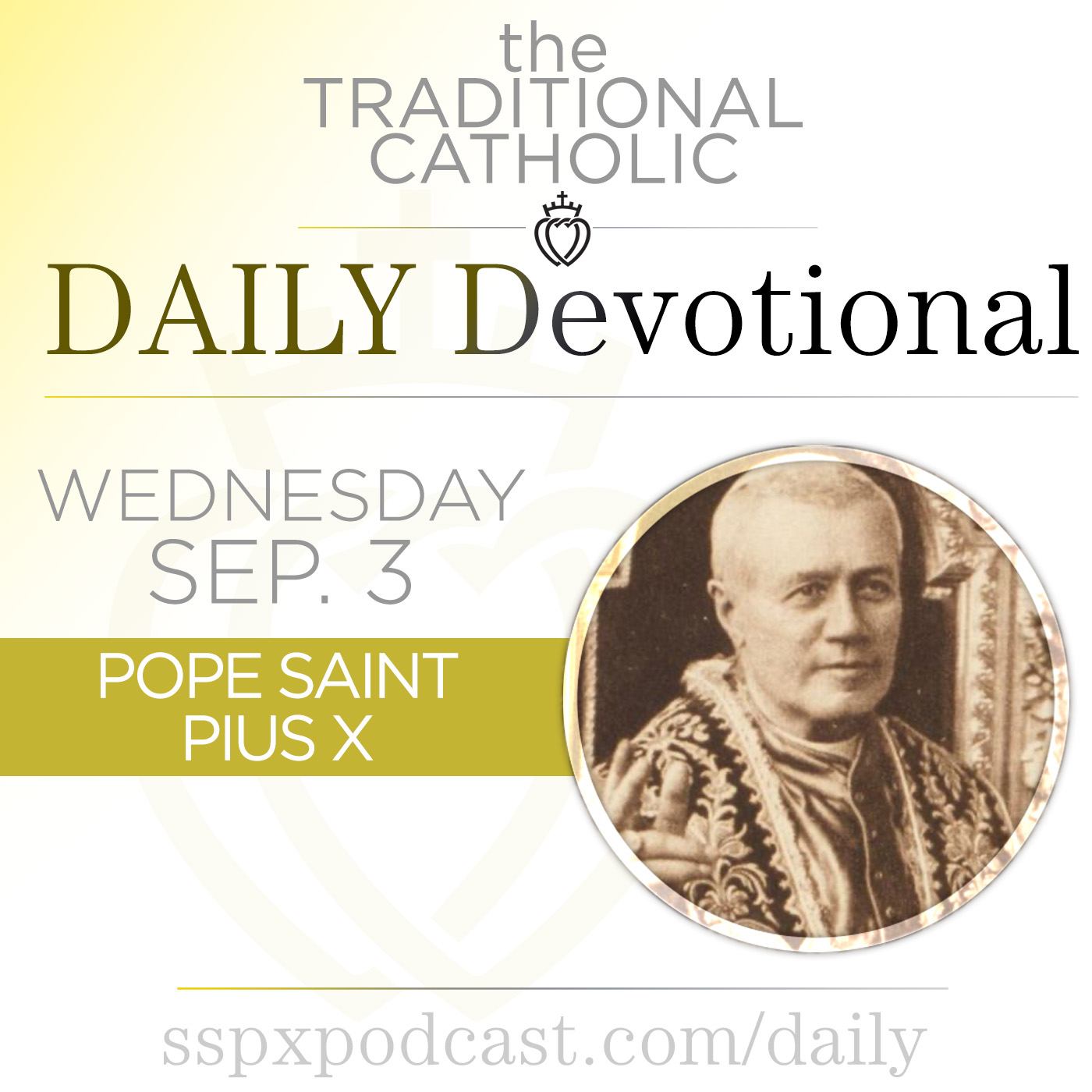 It’s the Feast of St. Pius X, 1st Class in the SSPX, with the color of White. In this episode: the meditation: “Do This in Commemoration of Me!”, today’s news from the Church: “The Church Speaks Out Against Trivializing Abortion”, a preview of the Sermon: “Lessons from the Tomb of St. Pius X”, and today’s thought from the Archbishop.