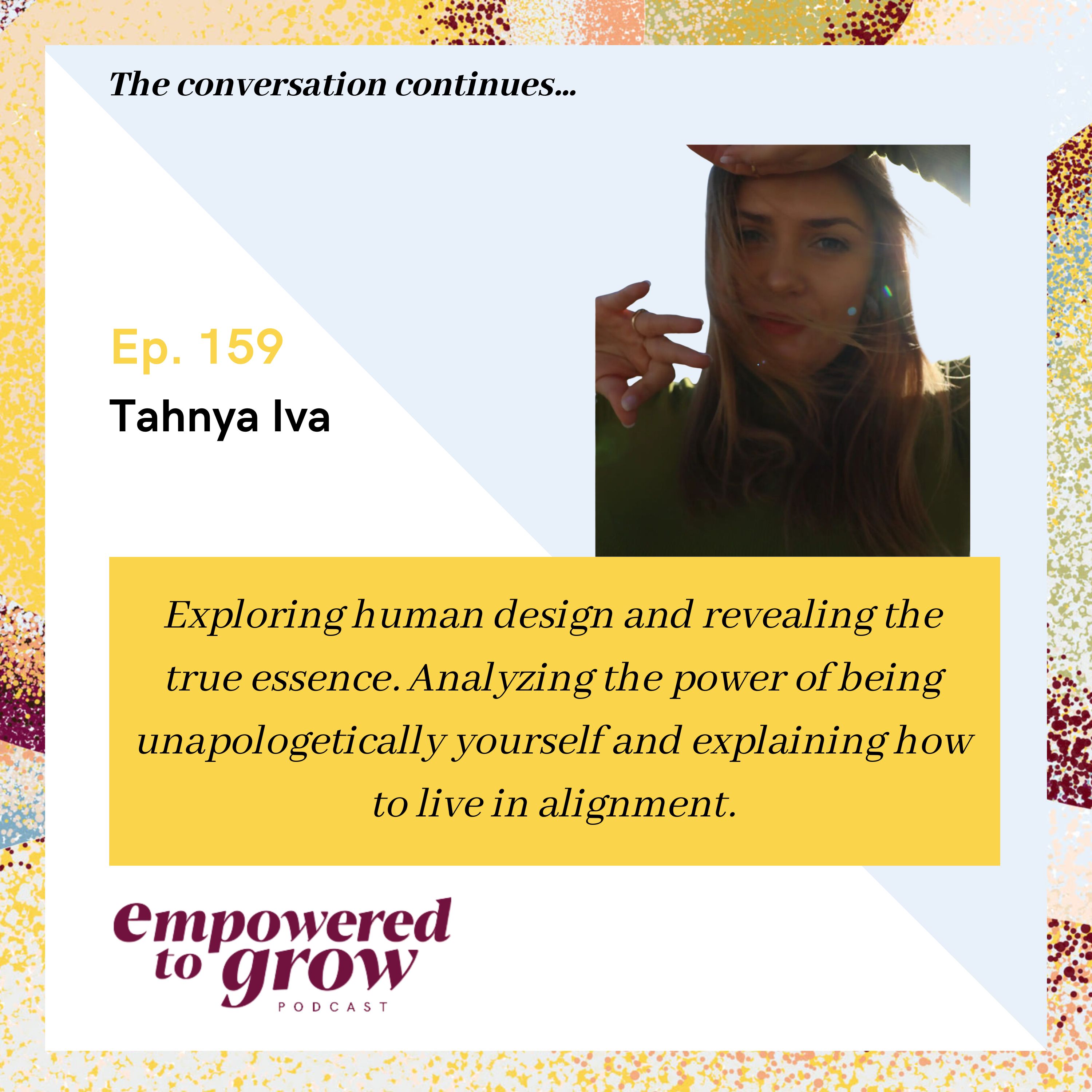 The conversation with Tahnya Iva continues to unchartered waters… Exploring human design and revealing the true essence. Analyzing the power of being unapologetically yourself and explaining how to live in alignment.