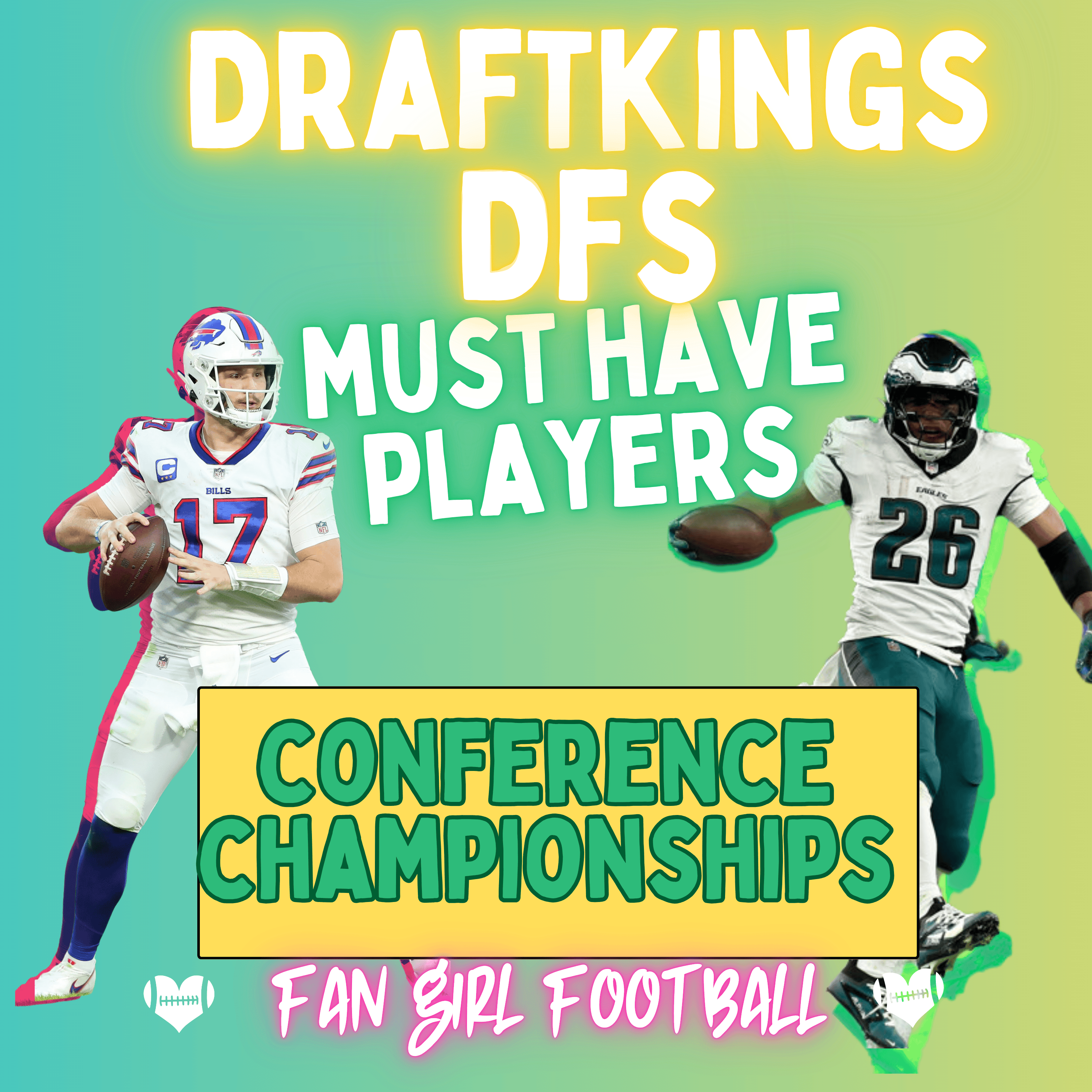 #fangirlfootball #fangirlfootballpod #fangirl #fantasyfootball #conferencechampionship #dailyfantasysports #dfslineupadvice #dfs #lineupadvice #footballlineup #nflfootball #dfspodcast #dfsstrategy #dailyfantasyfootball #draftkings #draftkingsnfl #draftkingslineups #buffalobills #philadelphiaeagles #washingtoncommanders #kansascitychiefs